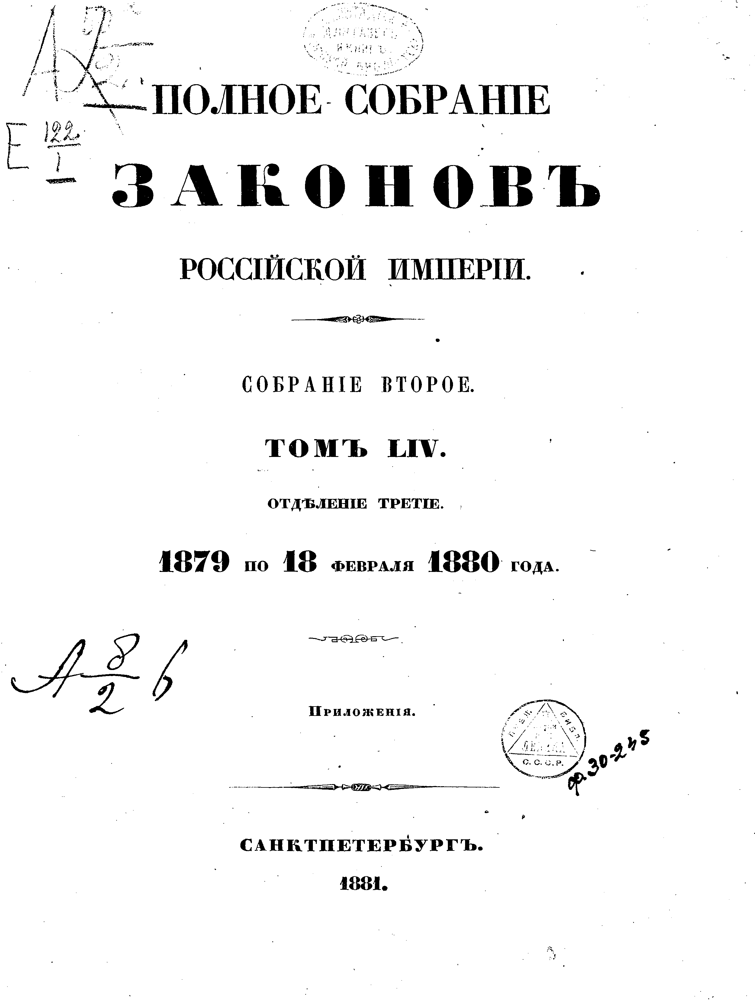 Полное собрание законов Российской Империи. Собрание Второе. Том LIV. Отделение 3