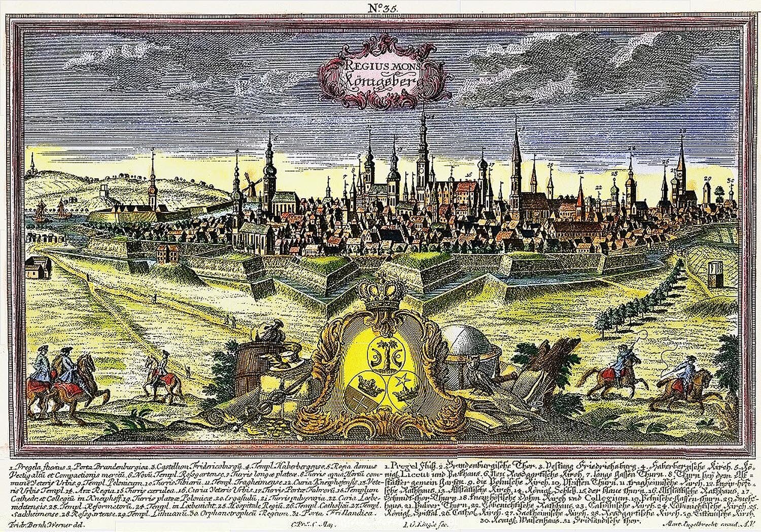 1758 год. 23 января. Русский генерал Виллим Виллимович Фермор (1702 – 1771) принимает капитуляцию Кенигсберга. В ходе Семилетней войны русские войска заняли Кенигсберг и всю Восточную Пруссию. Была учреждена должность генерал-губернатора, на которую был назначен главнокомандующий русской армией генерал-аншеф В.В. Фермор. Восточная Пруссия находилась под властью России до 1762 г. Известны своеобразные принципы политики Фридриха II, этого «короля-философа», который говорил: «Если вам нравится чужая провинция и вы имеете достаточно сил, занимайте ее немедленно. Как только вы это сделаете, вы всегда найдете достаточное количество юристов, которые докажут, что вы имеете все права на занятую территорию». Однако и Фридрих II добился осуществления своих замыслов не сразу. После разбойничьего захвата австрийской Силезии. которая по своим богатствам стоила всех земель Бранденбургско-Прусского королевства, вместе взятых, ему пришлось иметь дело с русско-франко-австрийской коалицией. Русское правительство, вступая в войну, руководствовалось тем соображением, чтобы «положить достаточные пределы силе такого государя, которого неправедные замыслы никаких пределов не знают». Говоря другими словами, русское правительство хотело своим вступлением в войну положить конец захватам Фридриха II в Прибалтике. В январе 1758 года, когда русская армия под предводительством Фермoра вступила в Восточную Пруссию, прусский гарнизон Кенигсберга покинул город вместе с высшими чинами управления, а явившаяся 10 января к русскому главнокомандующему депутация жителей Кенигсберга заявила о готовности отдаться под покровительство русской императрицы при условии сохранения городских привилегий. На другой день русское войско торжественно вступило в город. По свидетельству Болотова, очевидца происходивших тогда в Кенигсберге событий, при въезде главнокомандующего «все жадничали видеть наши войска и самого командира, а как присовокуплялся к тому и звон колоколов... и играно в трубы и в литавры... во все время шествия, то все сие придавало оному еще более пышности и великолепия». В донесении Фермoра на имя императрицы говорится: «Все здешние начальные и чиновные люди встретили меня в замке и отдались с глубочайшей покорностью в протекцию Вашего императорского величества». Заняв Кенигсберг, русские оккупировали всю восточную Пруссию и объявили ее присоединенной к России в качестве русской провинции. Население, численностью в 521 тысячу человек, принималось в русское подданство и должно было принести присягу на верность императрице. В донесении Фермора от 21 января 1758 гола значится: «Гражданские служители все охотно в службе Вашему императорскому величеству быть желают, и генеральную присягу, с которой при сем копия, учинили». Между прочим, присягнула вся университетская корпорация, и в ее составе знаменитый Кант, бывший тогда скромным доцентом университета. Кенигсберг стал русским городом, в котором служили молебствия за здравие императрицы Елизаветы Петровны и праздновали русские победы над прусским королем торжественными банкетами и иллюминациями. Жители Кенигсберга и всей Восточной Пруссии освобождались русскими от разорительных бедствий войны, тяжелой прусской рекрутчины и обременительных поборов в пользу Гогенцоллернов. Вот почему широкие слои насел
