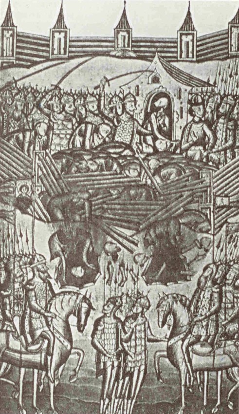 Взятие Киева монголами в 1240 году. Миниатюра из русской летописи