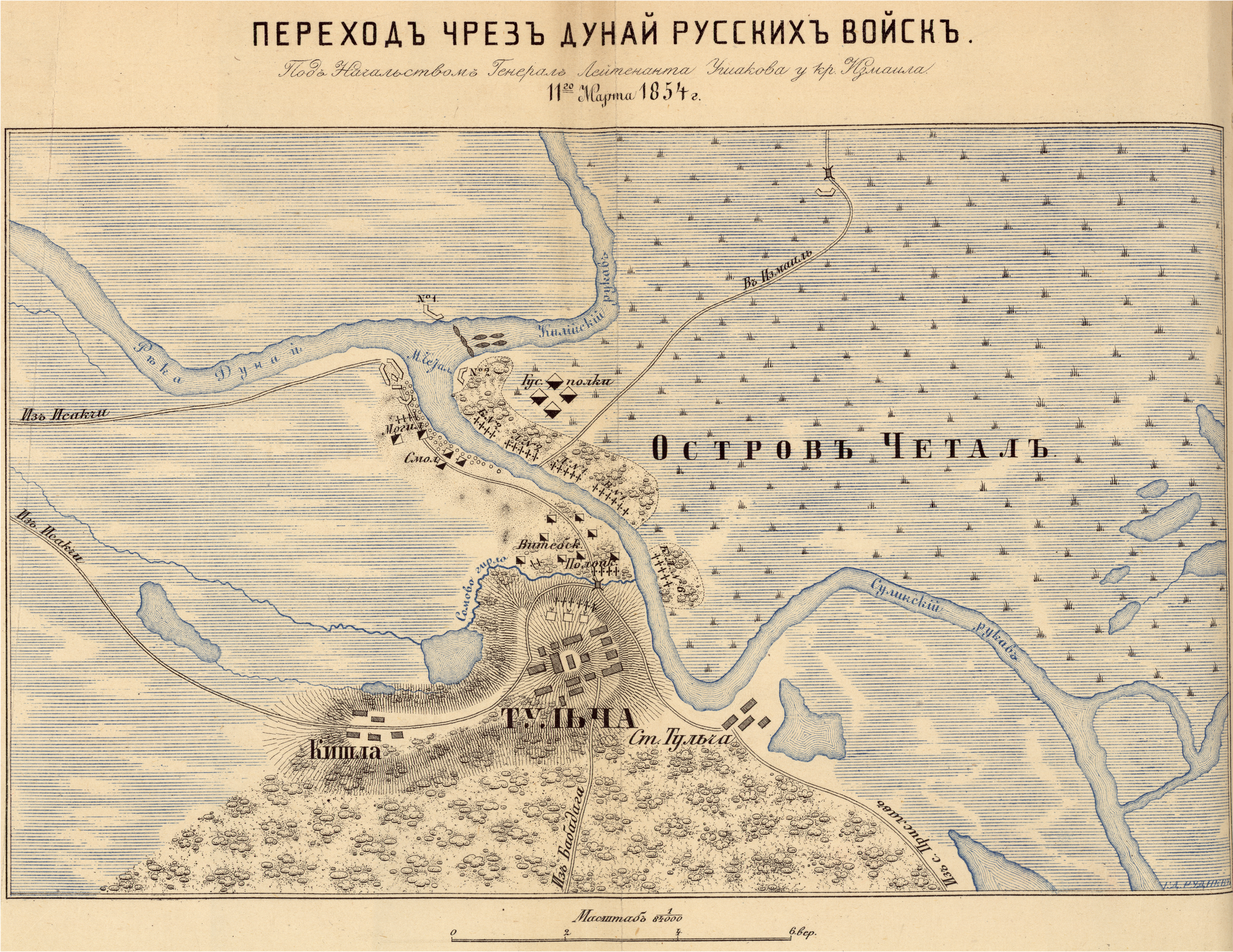 План перехода русских войск через Дунай, у Измаила 11 марта 1854 г.
