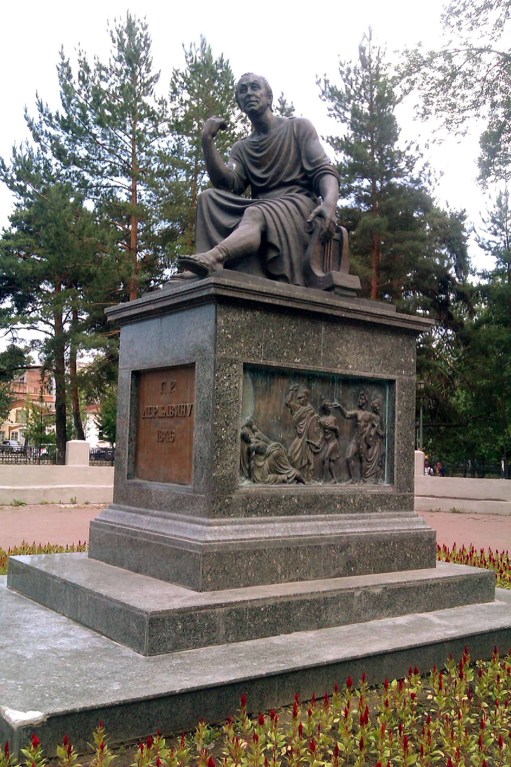 Много, поэтов в мире. . . . Все они на языке человеческом поучали, утешали, иногда даже соблазняли соотечественников и иноплеменников. Один Державин, воспарив духом в небо богомыслия, изучил там язык Серафимов, неумолчно воспевающих Бога и Его вечное Царство. В блаженные часы небесного вдохновения, на одном из богатейших наречий, он так величественно воспел Вседержителя и бессмертие души человеческой, как люди, не просвещенные Духом Божиим, сих священнейших предметов не воспевали и, кажется, воспевать не могут. Бессмертны твои творения, гений в русских стихотворцах изящнейший! Истлеет этот гранит служащий тебе подножием; превратится в прах эта бронза изображающая вид твой, погибнет память царств и народов; а сладкое и тихое бряцание гармонической лиры твоей, не престанет увеселять человечество. Твои высокие оды: Бог и Бессмертие души — вечны, не только в мире тварей, но и пред лицем Всевышнего, — во всем мире вечности! Чиноначальник горних сил, твои Ангел хранитель, при самом явлении сих гимнов в грешный мир, вписал их в вечную и неизгладимую книгу добрых дел человечества. Представляя их списки лицу Божественному и сонмам духов чистейших, он всегда испрашивает милость твоей души, твоим присным, твоему Отечеству, твоим Монархам. Цари народов, гордящихся древностью происхождения и мудрости, для назидания подданных и как бы для освящения жилищ своих, лучшие чертоги украшают начертанием твоих песнопений, муж незабвенный и приснопамятный! Россия доколе существует в мире, — весь мир, доколе будут существовать люди, не престанут в сердцах своих, неизгладимыми буквами, запечатлевать мудрые уроки о Боге и Бессмертии, из твоих творений — наш исполин изящной поэзии!