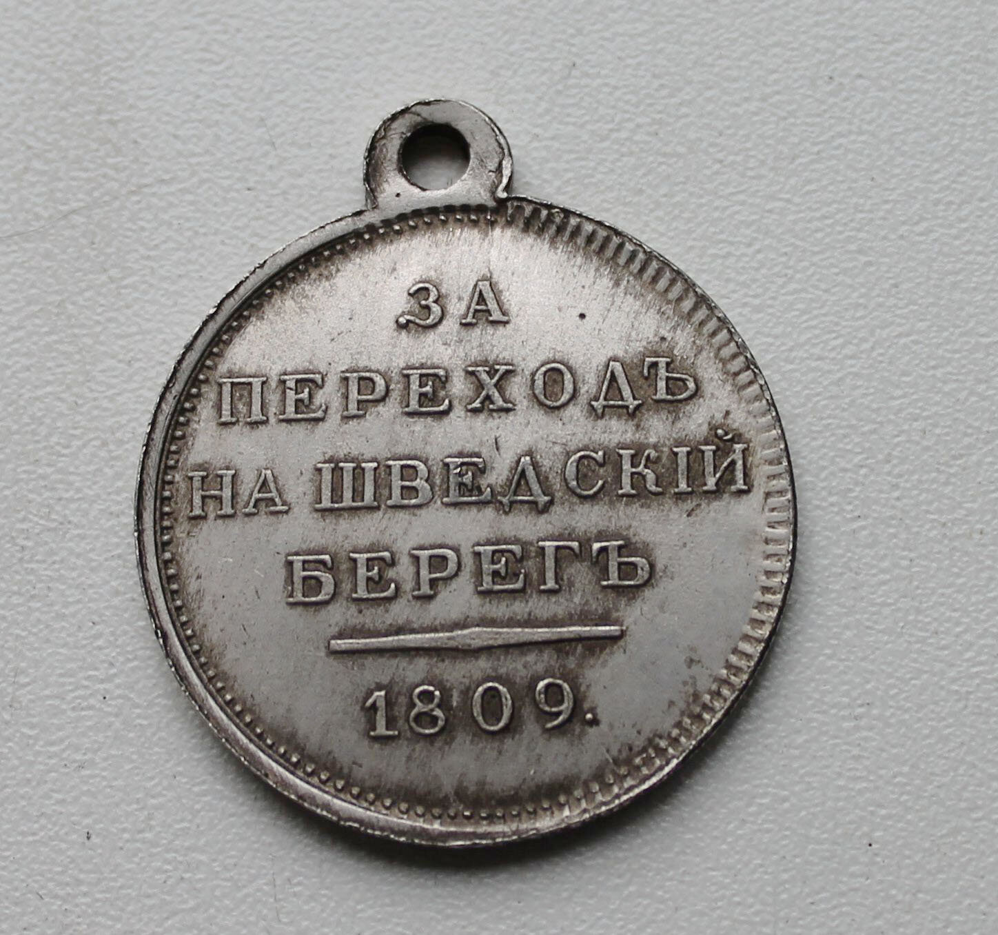 Медаль «За переход на шведский берег» была учреждена Александром I 14 (26) апреля 1809 года в связи с военными успехами русской армии во время русско-шведской войны. Награждались солдаты — участники похода в Швецию по льду Ботнического залива через пролив Кваркен
