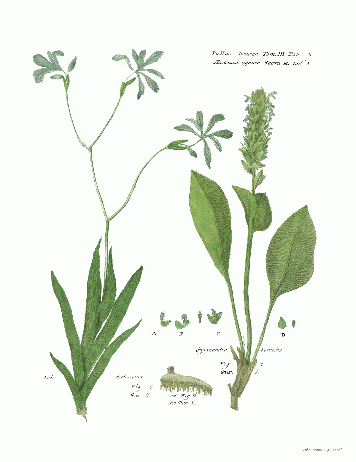 Том III. Таб.A. Iris Dicliotoma. Gymnandra borealis.