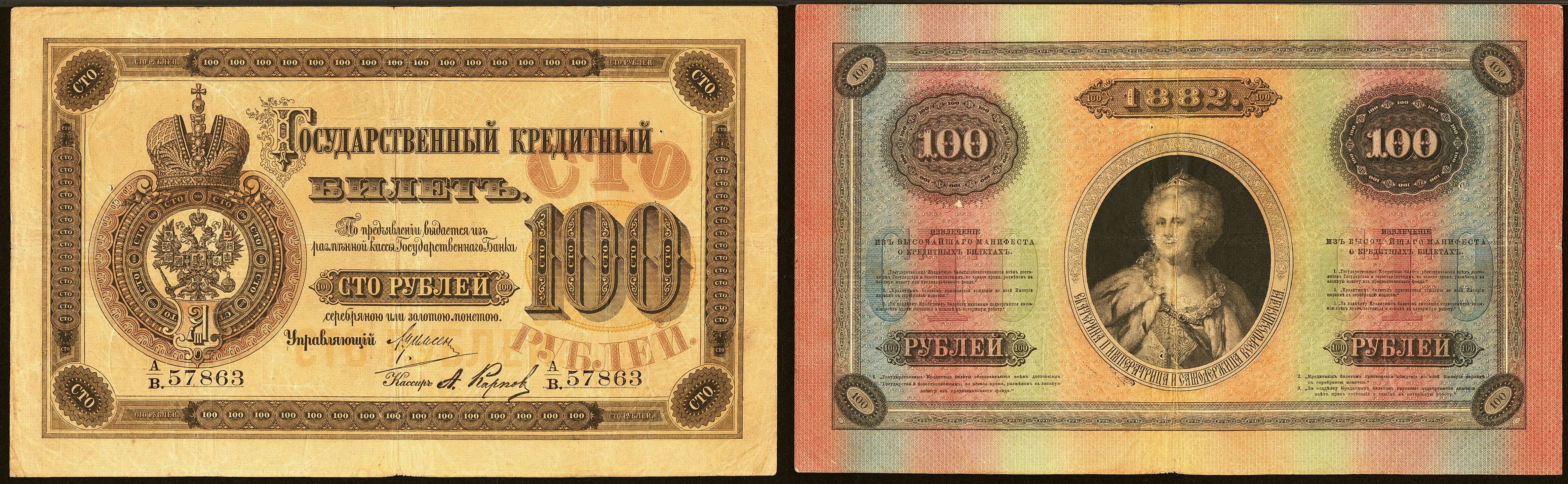 100 рублей 1882 г.