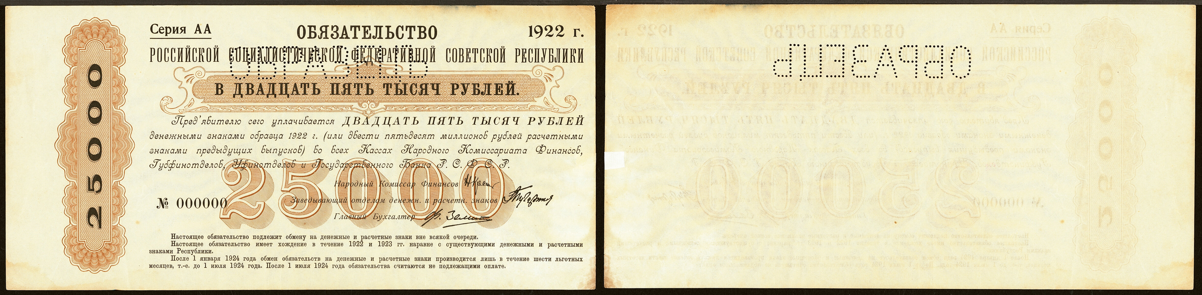 Ообязательства 1922 г., обязывающие поменять на 25 тыс. рублей