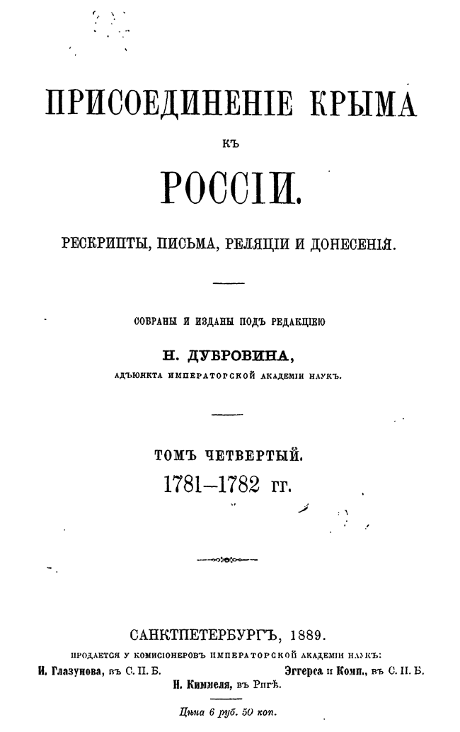 Присоединение Крыма к России. Том IV. 1781 — 1782 гг.
