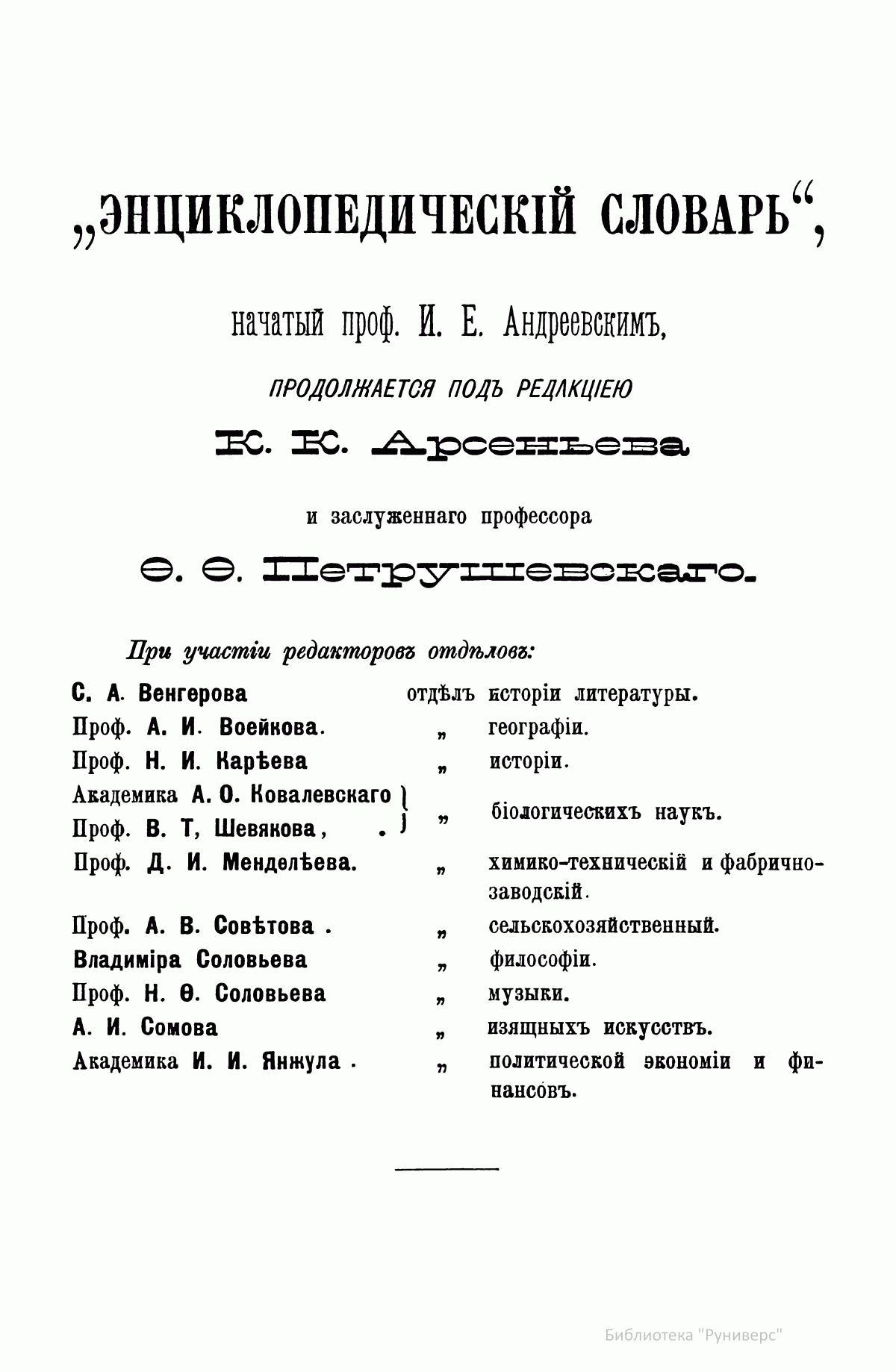После кончины Андреевского новая редакция во главе с К. К. Арсеньевым и Ф. Ф. Петрушевским значительно увеличила число оригинальных статей и привлекла к сотрудничеству широкий круг общественно-политических деятелей либерального толка (от П. Н. Милюкова, В. И. Герье, Н. И. Кареева до легальных марксистов П. Б. Струве и М. И. Туган-Барановского, раздел философии вел крупнейший русский религиозный философ Вл. С. Соловьев), а также таких крупнейших ученых как Д. И. Менделеев, А. И. Бекетов, А. И. Воейков, Д. И. Анучин, Ю. М. Шокальский, Н. М. Книпович, А. О. Ковалевский, А. И. Советов, В. С. Соловьев и др.