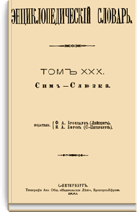 Самая крупная дореволюционная русская универсальная энциклопедия, выпущенная акционерным издательским обществом «Ф. А. Брокгауз — И. А. Ефрон». Состоит из 86 томов (82 основных и 4 дополнительных), выходивших в течение 1890-1907 годов. Первые 8 томов (до буквы «В») вышли под общей редакцией профессора И. Е. Андреевского и в основном содержали переводы на русский язык статей знаменитой немецкой энциклопедии Брокгауза «Konversations Lexikon».