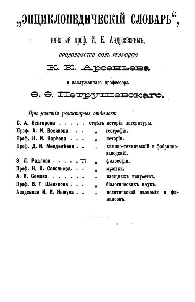 После кончины Андреевского новая редакция во главе с К. К. Арсеньевым и Ф. Ф. Петрушевским значительно увеличила число оригинальных статей и привлекла к сотрудничеству широкий круг общественно-политических деятелей либерального толка (от П. Н. Милюкова, В. И. Герье, Н. И. Кареева до легальных марксистов П. Б. Струве и М. И. Туган-Барановского, раздел философии вел крупнейший русский религиозный философ Вл. С. Соловьев), а также таких крупнейших ученых как Д. И. Менделеев, А. И. Бекетов, А. И. Воейков, Д. И. Анучин, Ю. М. Шокальский, Н. М. Книпович, А. О. Ковалевский, А. И. Советов, В. С. Соловьев и др.