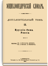 Самая крупная дореволюционная русская универсальная энциклопедия, выпущенная акционерным издательским обществом «Ф. А. Брокгауз — И. А. Ефрон». Состоит из 86 томов (82 основных и 4 дополнительных), выходивших в течение 1890-1907 годов. Первые 8 томов (до буквы «В») вышли под общей редакцией профессора И. Е. Андреевского и в основном содержали переводы на русский язык статей знаменитой немецкой энциклопедии Брокгауза «Konversations Lexikon».