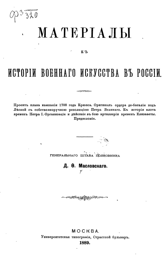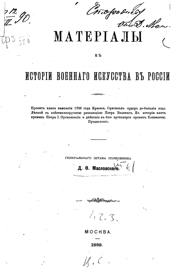Документы по военной истории, подготовленные полковником Масловским, свидетельствует, что русское военное искусство ни есть сплошное заимствование с запада.
