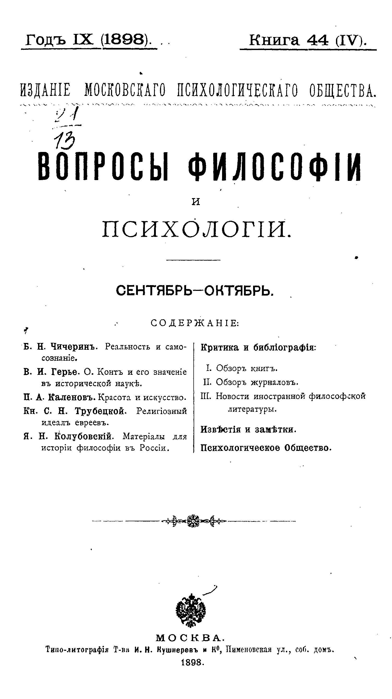 Вопросы философии и психологии. Книга 44.