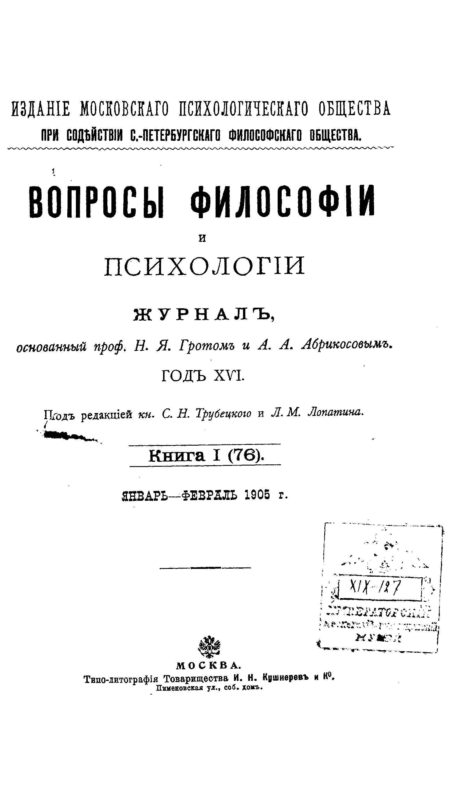 Вопросы философии и психологии. Книга 76.