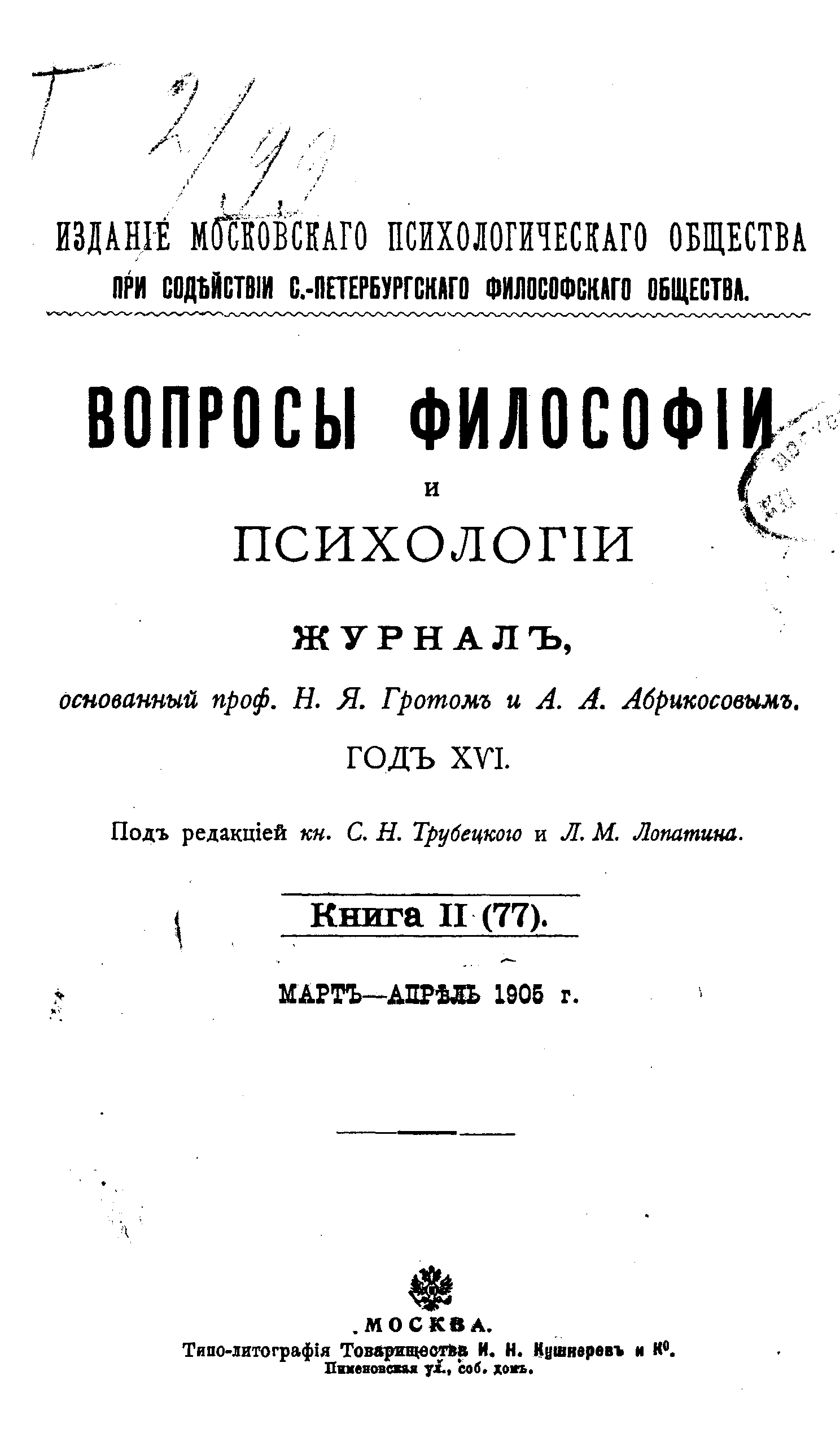 Вопросы философии и психологии. Книга 77.