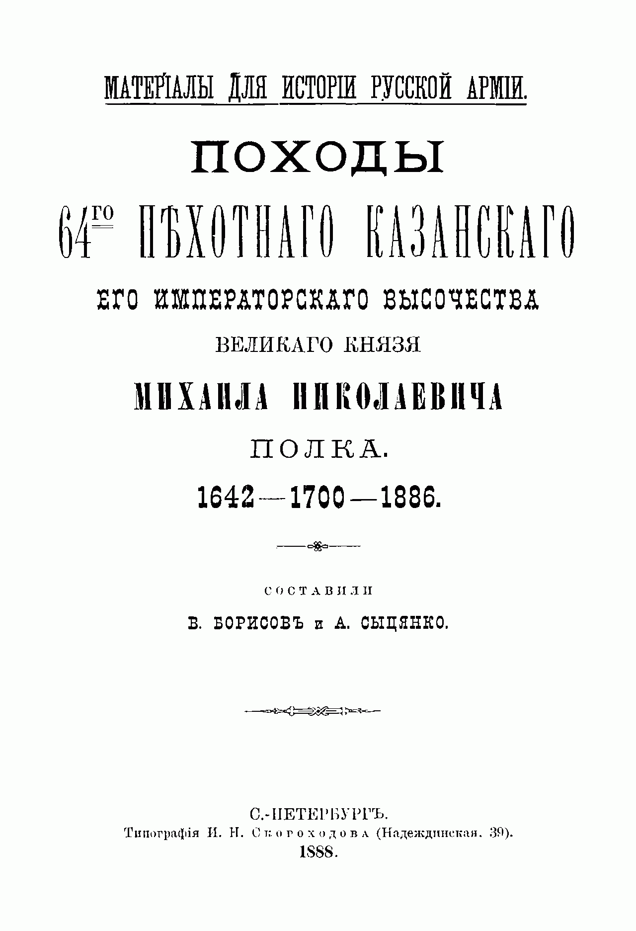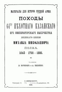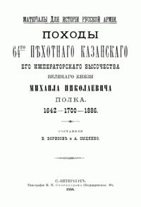 Походы 64-го пехотного Казанского Его Императорского Высочества Михаила Николаевича полка. 1642-1700-1886