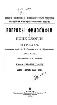 Вопросы философии и психологии. Книга 137-138.