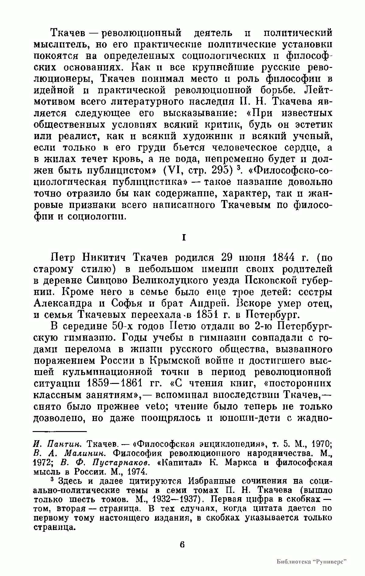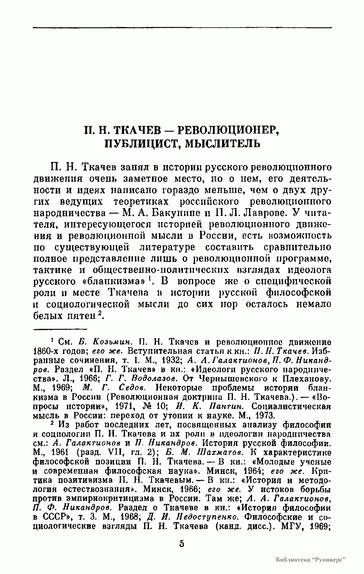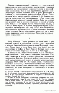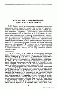 В первом томе собрания сочинений помещены произведения по философии, социологии, эстетике, педагогике и т. д., написанные П. Н. Ткачевым на родине в 60 — начале 70-х годов прошлого века. Значительная часть этих работ была напечатана лишь в журналах. В приложении даются юношеские стихи П. Н. Ткачева из его рукописного наследия. Во второй том включены произведения по философии, социологии, этике, истории, психологии, педагогике и т.д., а также основные программные статьи из органа «якобинского» течения в русском революционном народничестве журнала «Набат», написанные П. Н. Ткачевым в 70-х — начале 80-х годов XIX в. в эмиграции. Большинство произведений П. Н. Ткачева, напечатанных в журнале «Дело», ранее не переиздавались.