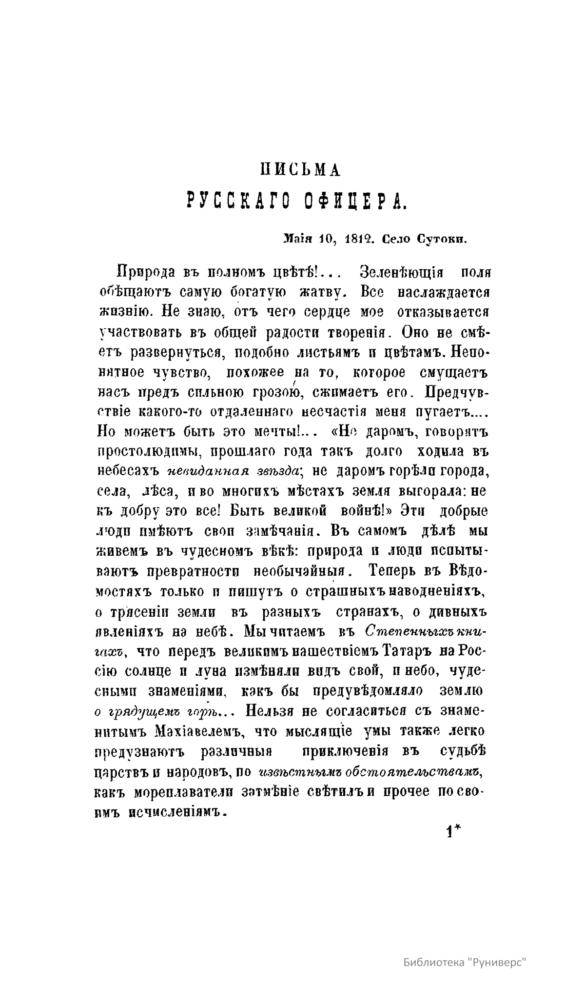 ПИСЬМА РУССКАГО ОФИЦЕРА, О ПОЛЬШѢ, АВСТРІЙСКИХЪ ВЛАДѢНІЯХЪ, ПРУССІИ И ФРАНЦІИ, СЪ ПОДРОБНЫМЪ ОПИСАНІЕМЪ ОТЕЧЕСТВЕННОЙ И ЗАГРАНИЧНОЙ ВОЙНЫ СЪ 1812 ПО 1815 ГОДЪ.