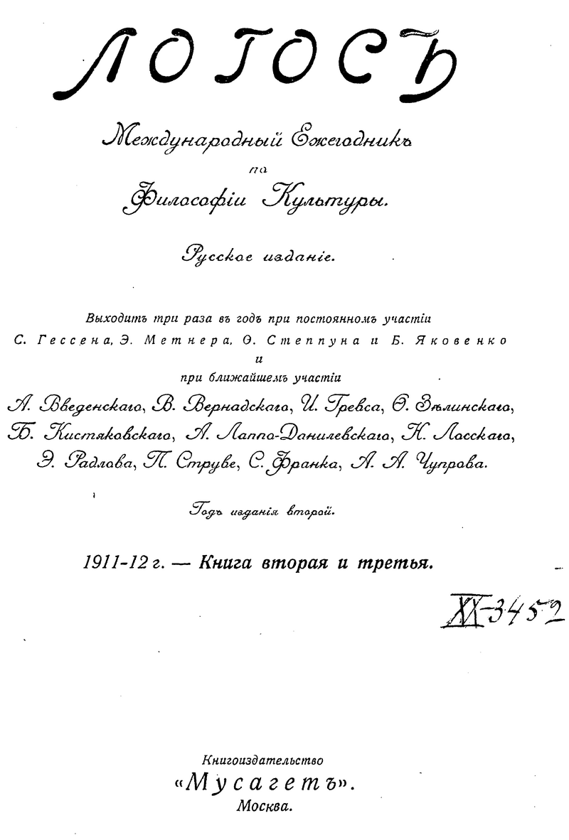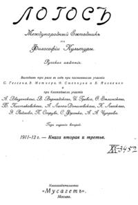 Логосъ. Международный ежегодникъ по философiи культуры. 1911-1912. Книга II и III