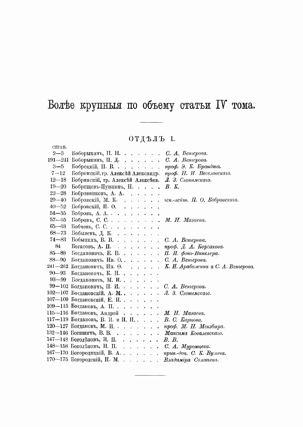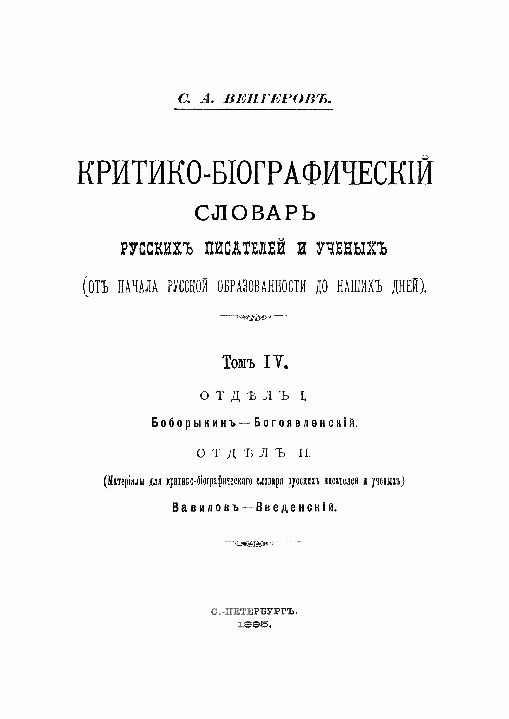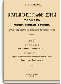 Критико-біографический словарь русскихъ писателей и ученыхъ. Томъ IV. Отдѣлъ I. Боборыкинъ - Богоявленскій. Отдѣлъ II. Вавиловъ - Введенскій.