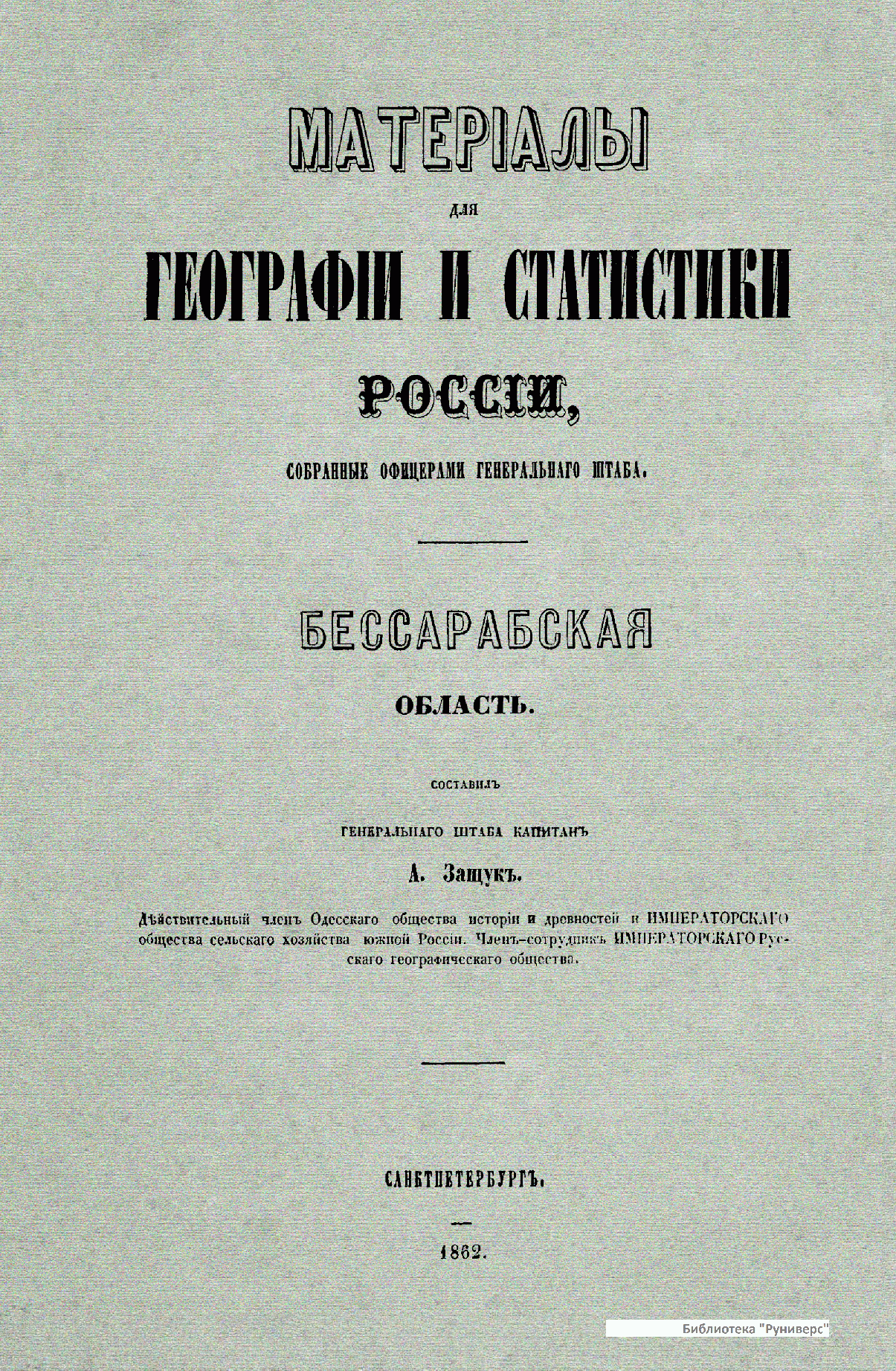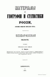 Материалы для географии и статистики России, собранные офицерами Генерального штаба. Бессарабская область. Часть 2