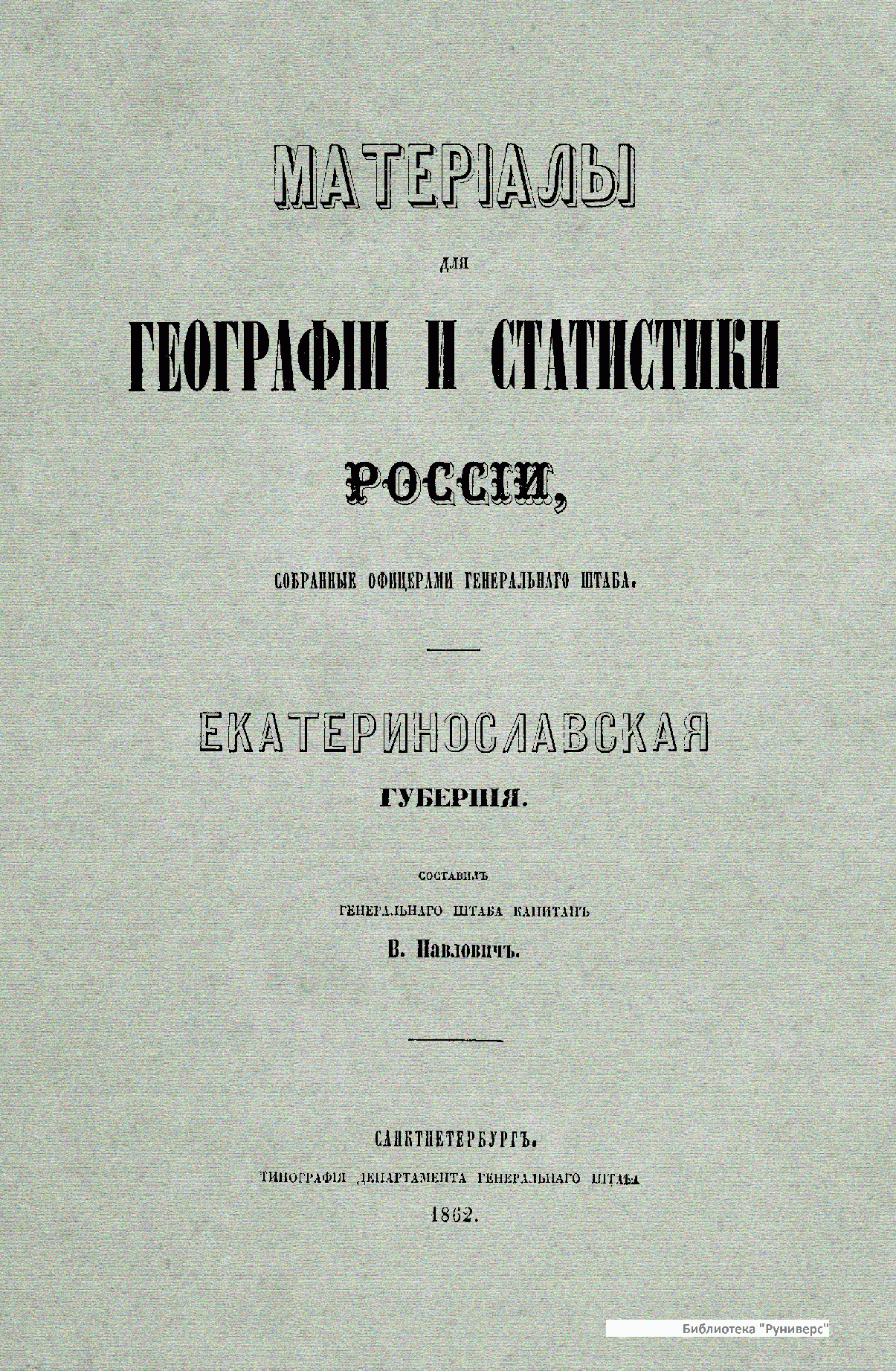Матерiалы для географiи и статистики Россiи, собранные офицерами Генеральнаго штаба. Екатеринославская губернiя