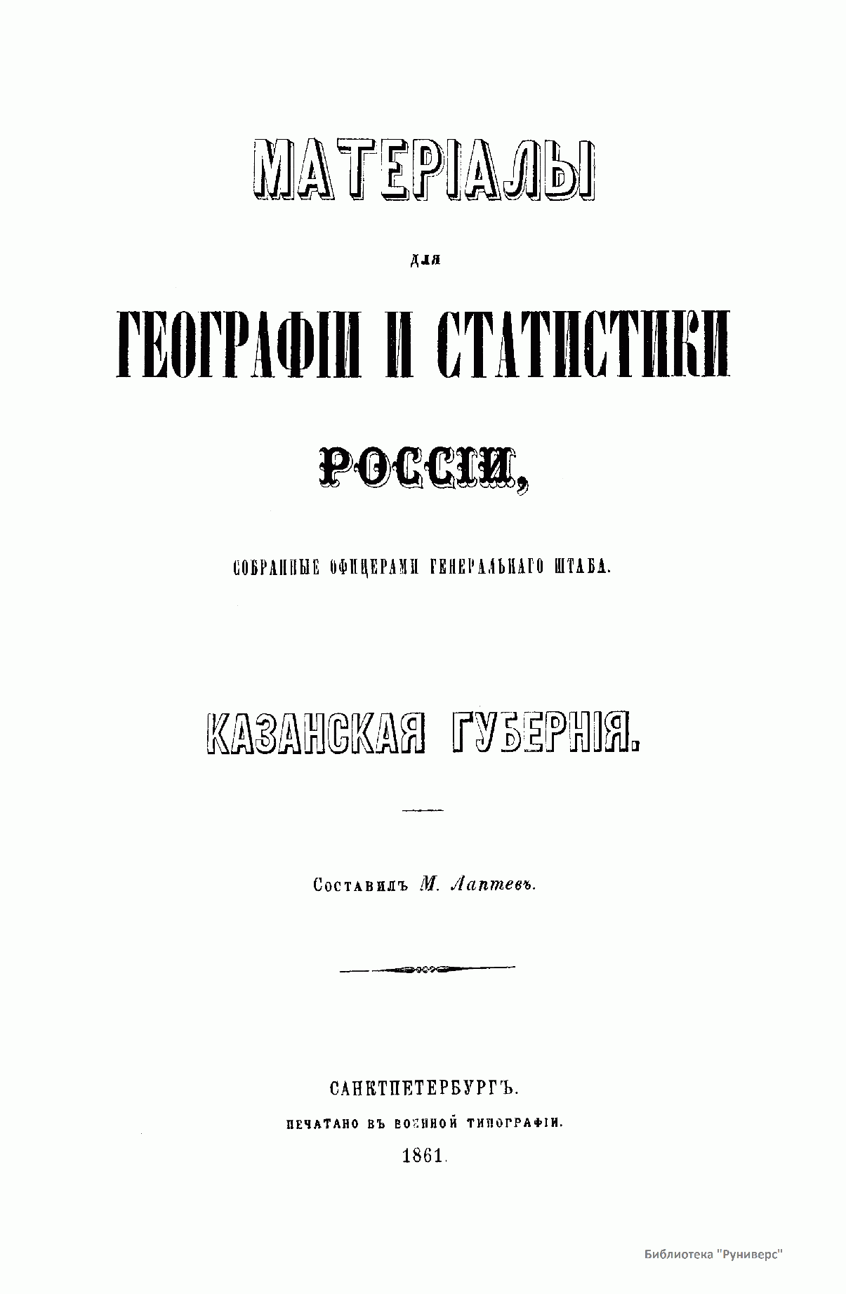Материалы для географии и статистики России, собранные офицерами Генерального штаба. Казанская губерния