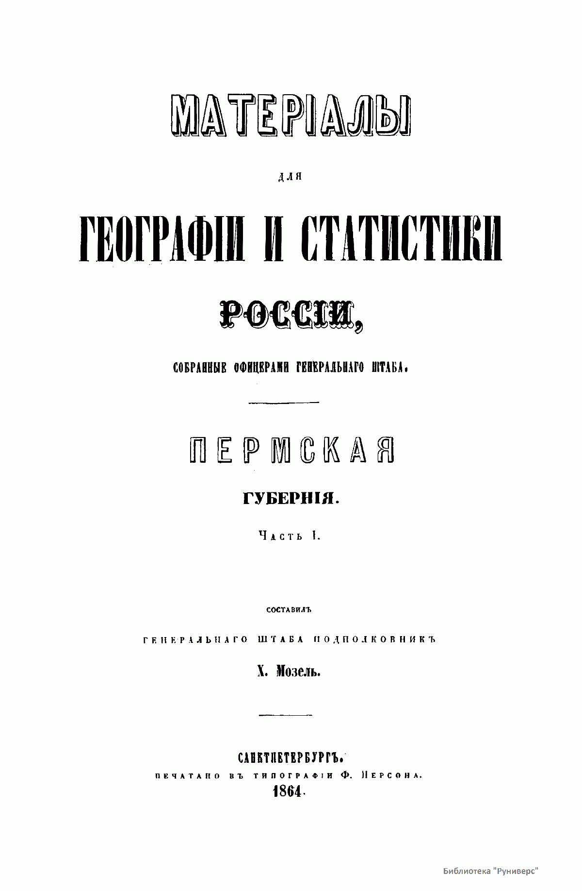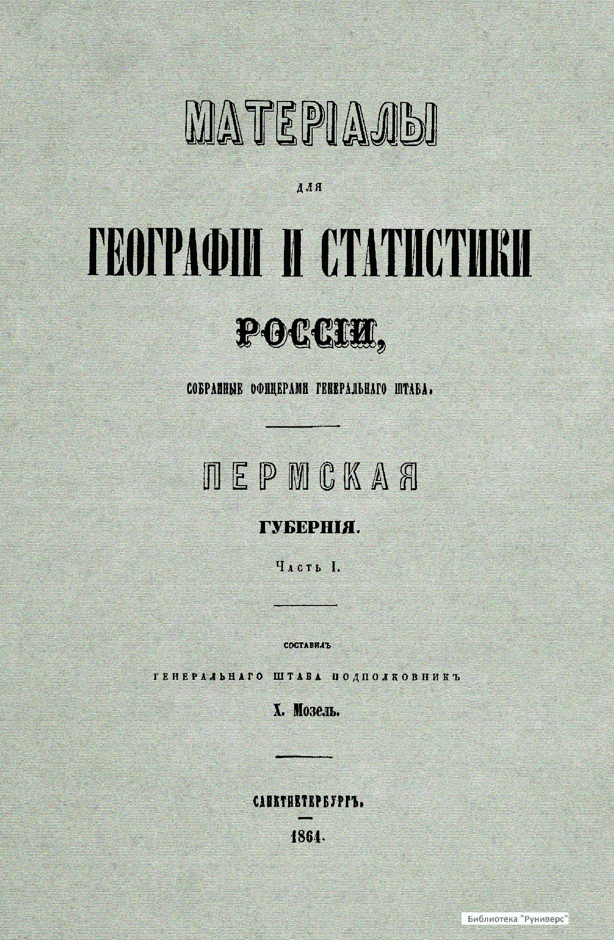 Материалы для географии и статистики России, собранные офицерами Генерального штаба. Пермская губерния. Часть 1