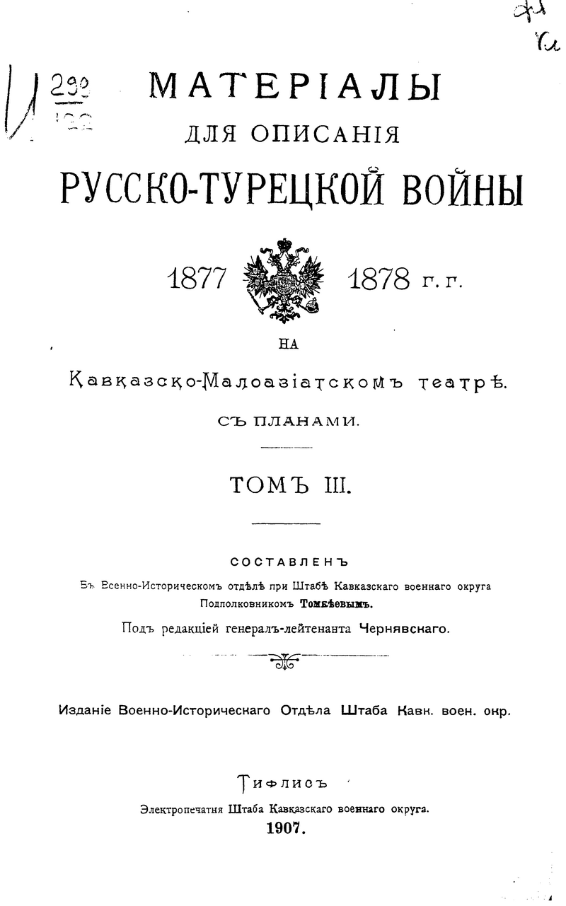 Материалы для описания русско-турецкой войны 1877-1878 гг. на Кавказско-Малоазиатском театре. Том III