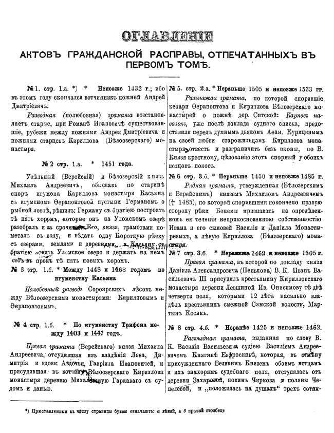 Указатели к 1-му тому актов