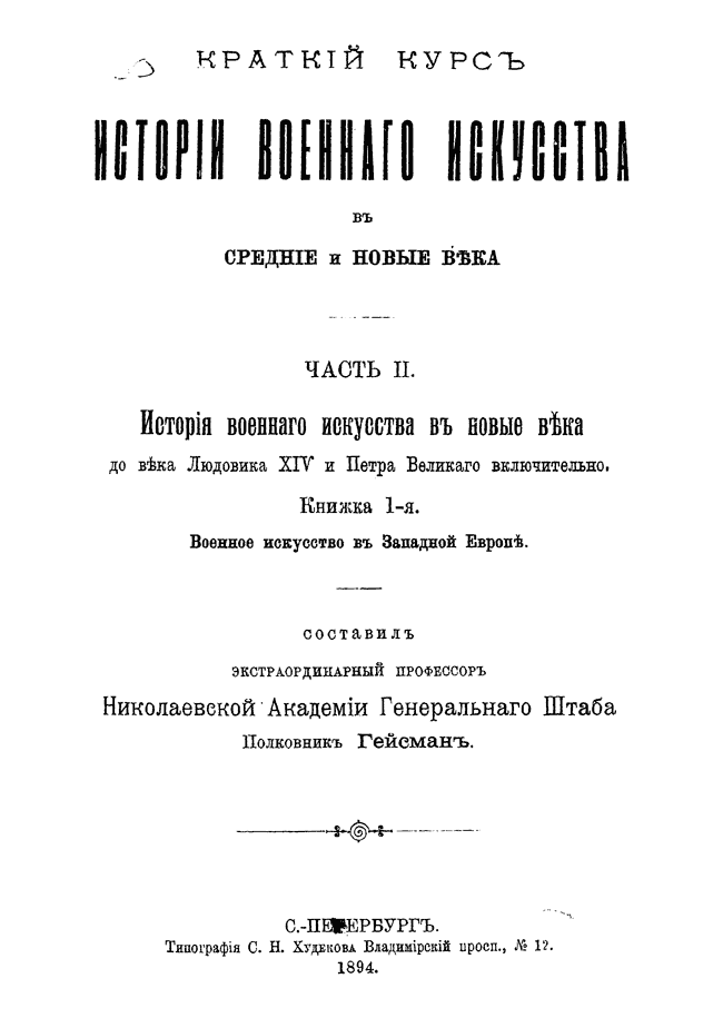 Краткий курс истории военного искусства в средние и новые века. Часть II. История военного искусства в новые века до века Людовика XIV и Петра Великого включительно