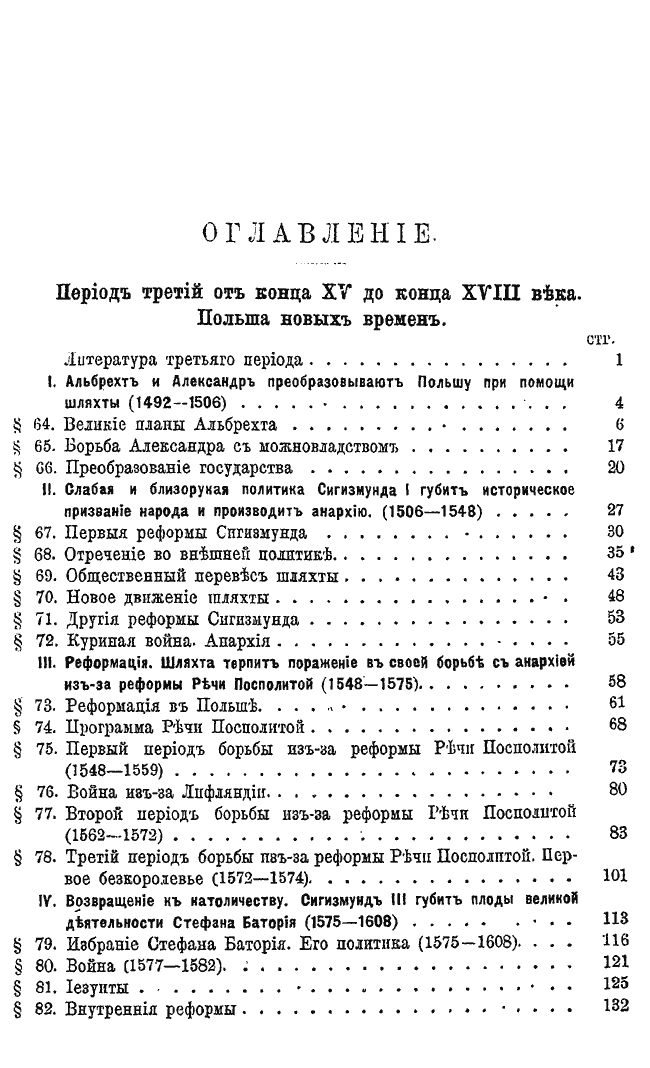 Оценивая историю как наставницу жизни, автор видит цель своего исследования в том, чтобы показать изменение основ и условий общественного и политического развития Польши в прошлом, выяснить причины этого развития и последовавшего за ним упадка, дать характеристику народа и выдающихся личностей в каждой эпохе и отделах, на которые распадается каждая эпоха. Особое внимание уделено XV и XVI векам – времени процветания Польши. Автор призывает читателя уважать прошлое, но не «превращать его в мумию, а разумно и трезво пользоваться уроками истории».