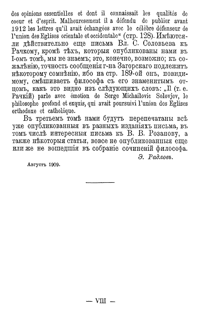 Собрание писем выдающегося русского религиозного мыслителя и поэта подготовлено к печати историком философии Эрнестом Радловым, который совместно с Владимиром Соловьёвым редактировал философскую часть словаря Брокгауза и Ефрона.