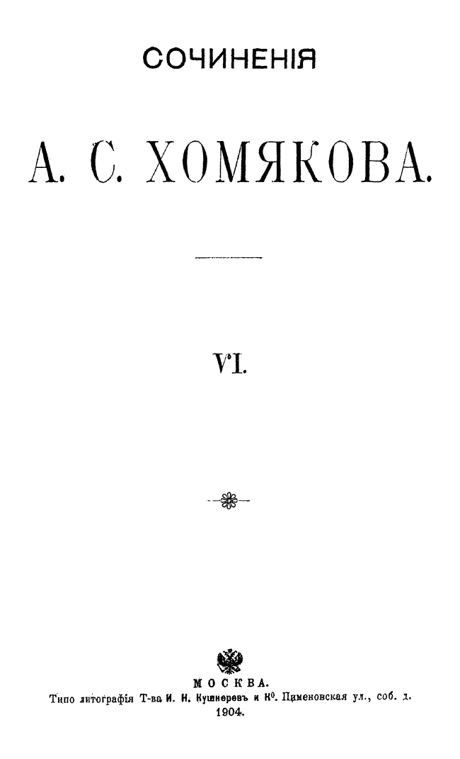Полное собрание сочинений Алексея Степановича Хомякова. Том VI
