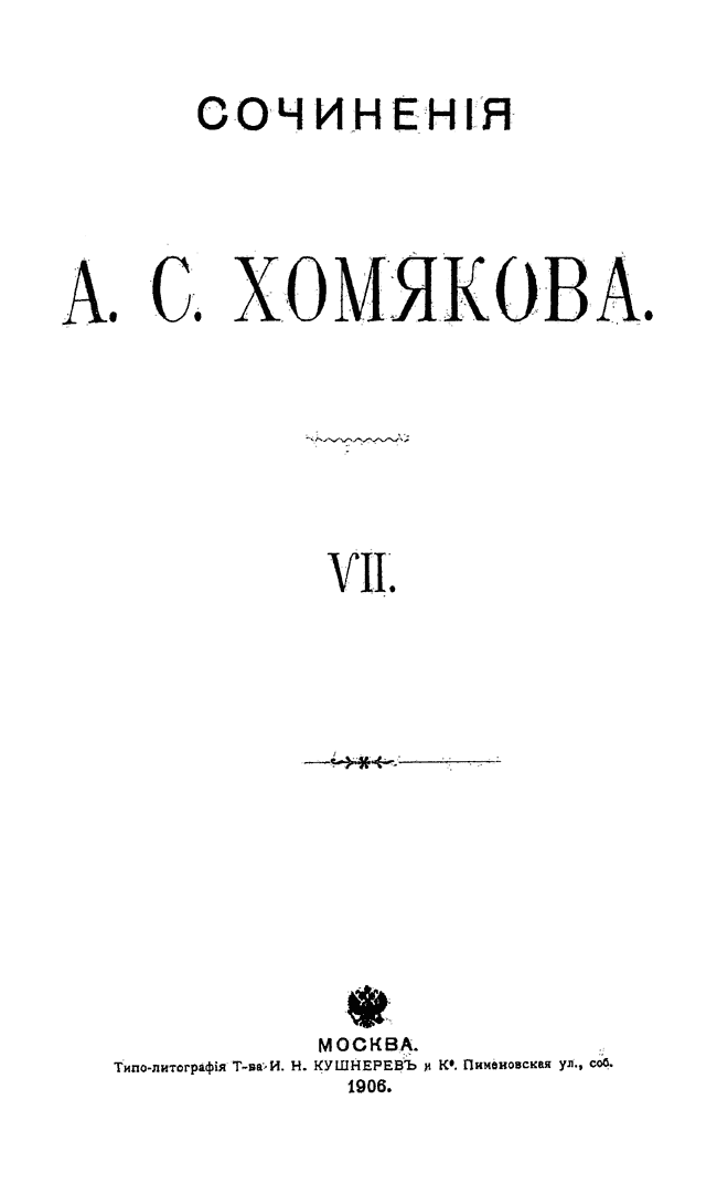 Полное собрание сочинений Алексея Степановича Хомякова. Том VII