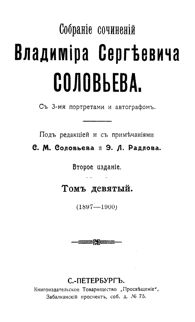 Собрание сочинений Владимира Сергеевича Соловьева. Том IX