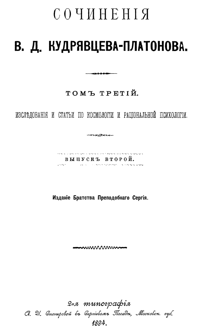 Сочинения В.Д. Кудрявцева-Платонова. Том III. Выпуск 2.