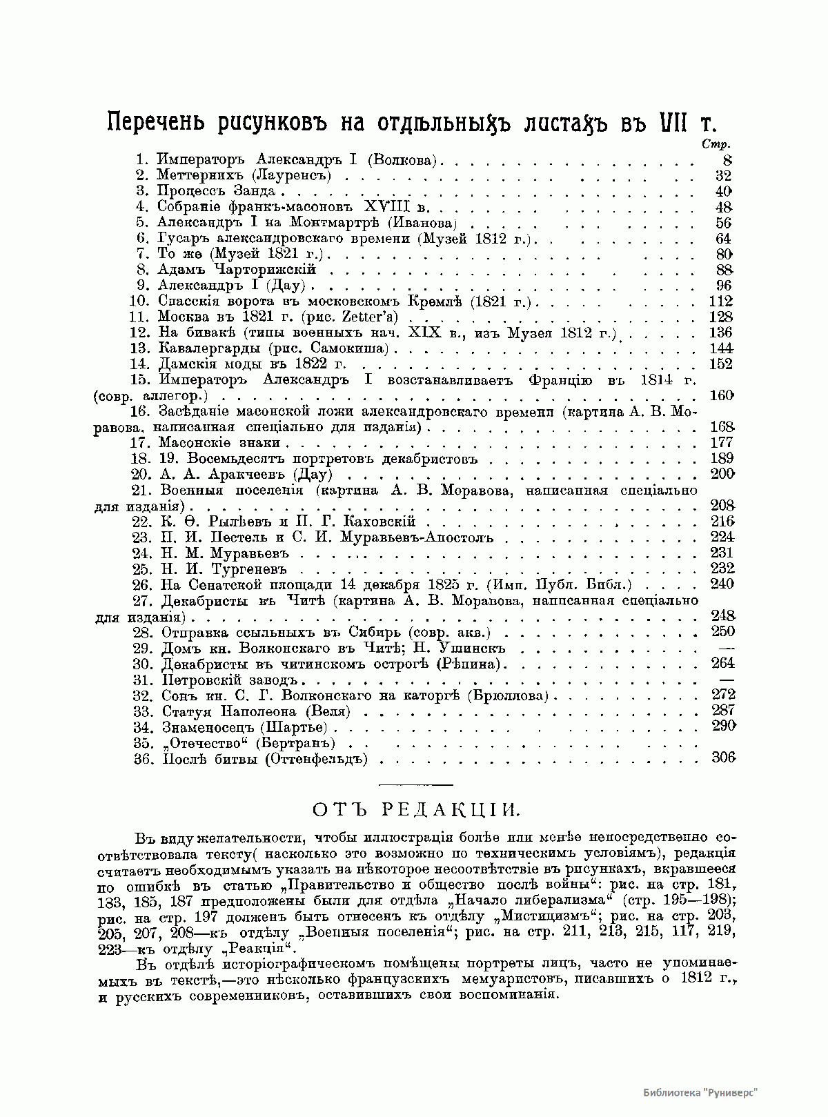 Настоящее научное издание – плод кропотливого коллективного труда Исторической комиссии, которая поставила перед собой цель дать объективную картину событий. Составляя план книги, авторы руководствовались следующими соображениями. Отечественная война 1812 года – один из самых драматических и вместе с тем самых значительных по последствиям моментов русской истории. Только поставленная в рамки европейской истории, изучаемая в тесной связи со всей эпохой, она может быть понята и оценена надлежащим образом. Поэтому книга начинается с эпохи Екатерины II, с франко-русских и вообще международных отношений ее времени, с первых столкновений революции с Европой, а заканчивается не вступлением русских войск в Париж и не Венским конгрессом, а концом царствования Александра I. Авторы критически относятся к политике Александра I в отношении похода в Европу, после того как Наполеон потерпел поражение в России, так как освобождение Европы «положило первые камни» тому самому могуществу Пруссии и Австрии, в котором коренятся все политические беды России. Недаром Кутузов своим трезвым умом понимал всю ненужность и опасность такого политического благотворительства. Причины такой «сентиментальной политики» авторы видят в том, что правительство не хотело считаться с интересами страны, а руководствовалось только личными видами. Такая политика, по мнению авторов, проводилась в течение всего XIX века. Авторы не считают Отечественную войну событием исключительно военным. Они делают попытку разглядеть облик русского общества, определить долю участия в войне русских общественных групп, выяснить ту меру признательности, которой потомки обязаны каждой из них. Многие из авторов имели возможность использовать новые архивные данные, большинству же приходилось оперировать уже опубликованным материалом. Таким образом, издание дает и сводку того материала, который был известен в значительной мере только специалистам. В книге представлены различные иллюстрации.