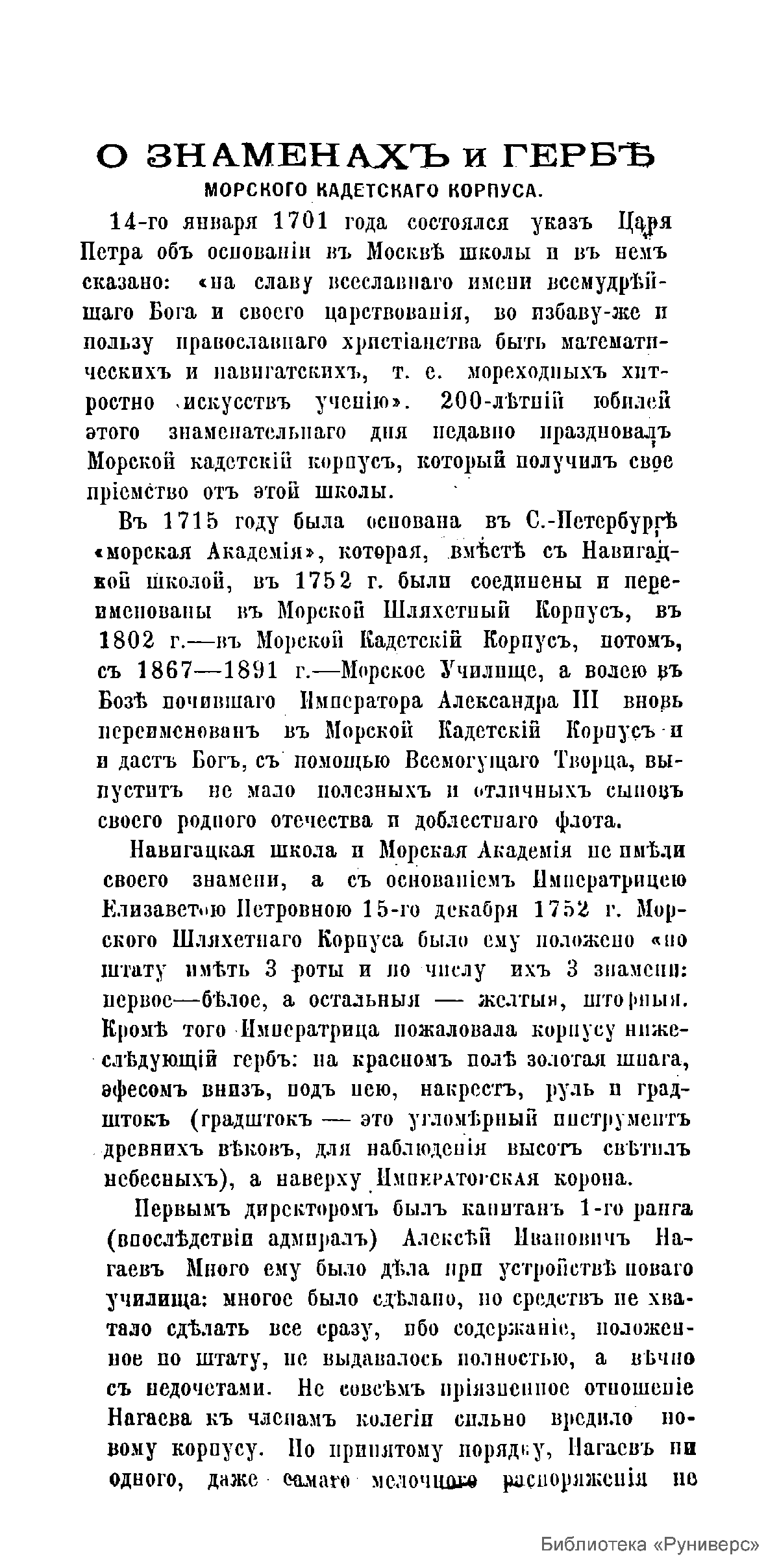 О знаменахъ и гербѣ морского кадетскаго корпуса