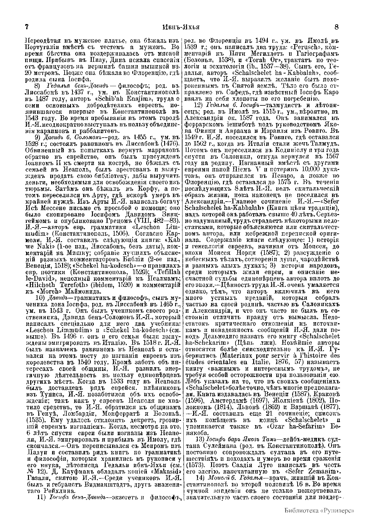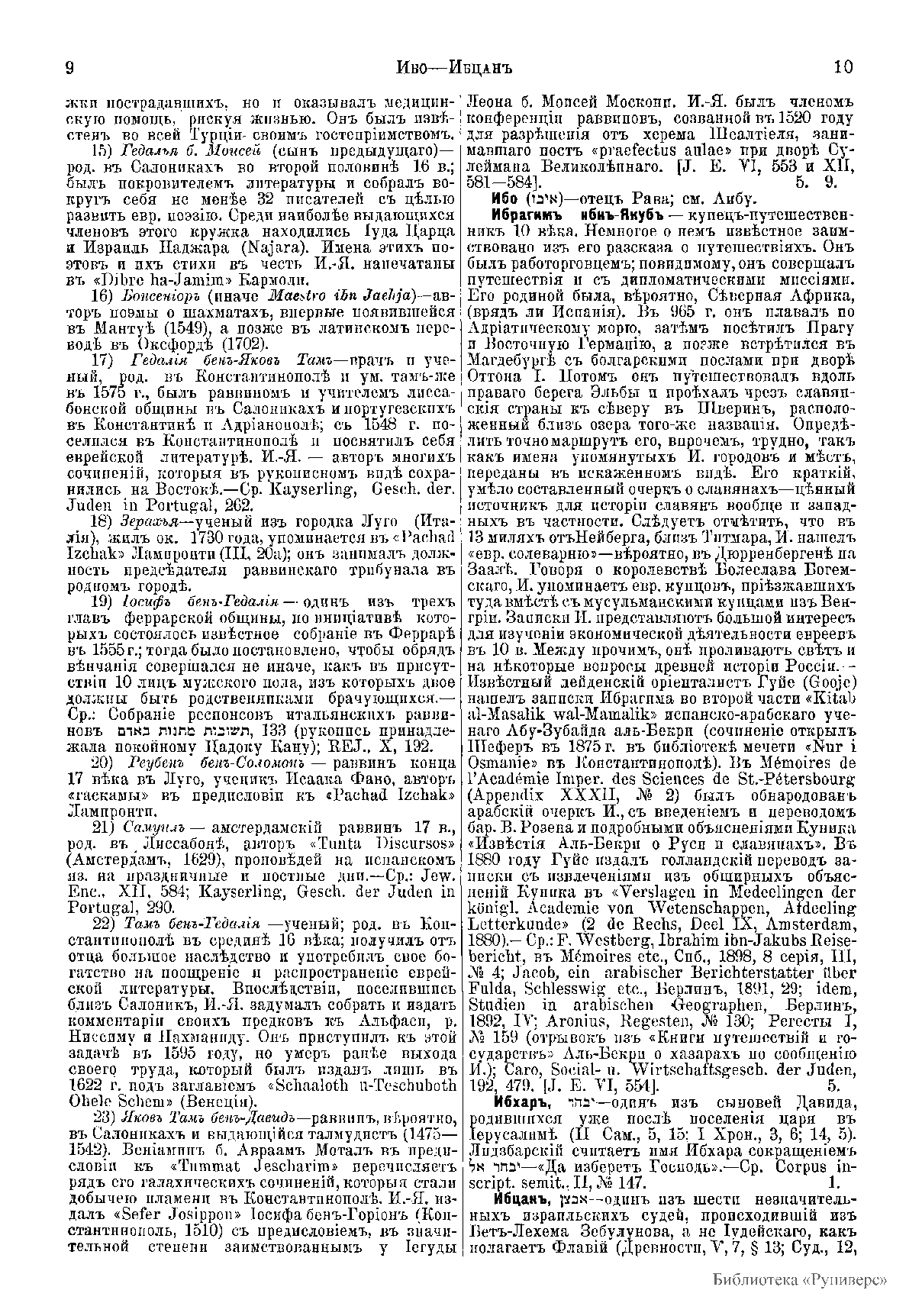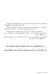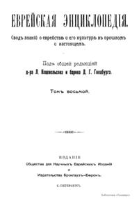 Первый крупный энциклопедический свод знаний о еврействе на русском языке. Энциклопедия была опубликована в 1908 – 1913 гг. в шестнадцати томах в Санкт-Петербурге «Обществом для научных еврейских изданий» и «Издательством Брокгауз – Ефрон». Основой и образцом для нее послужила вышедшая несколько годами ранее двенадцатитомная «The Jewish Encyclopedia» (London; New York, 1901 – 1906). Однако ее материал был существенно дополнен и расширен авторами «Еврейской Энциклопедии Брокгауза» во всем, что касалось истории, культуры и современного положения еврейских общин в Восточной Европе. В работе над «Еврейской энциклопедией Брокгауза» принимали участие виднейшие представители российской иудаики, гебраистики и востоковедения: А.Гаркави, Д. Гинцбург, Ю Гессен, С. Дубнов, И. Маркон, Н. Переферкович. «Еврейская энциклопедия Брокгауза» до сих пор остается одним из важнейших источников справочной информации и статистических данных о почти шестимиллионном еврейском населении Российской империи начала XX в. И потому ее данные можно отнести к числу ценных источников сведений по социально-политической, этнической, культурно-религиозной истории и исторической демографии России и сопредельных ей стран.