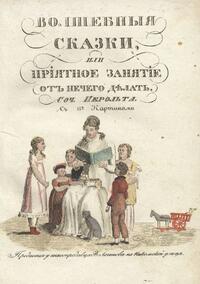 Типография Августа Семена издавала много детских книг, очень интересно их оформляя. Вот и издание «Волшебныя сказки, или Приятное занятие от нечего делать» состоит из десяти сказок. Текст каждой сказки печатался отдельным изданием, но со сквозной нумерацией страниц. Каждую такую небольшую книжку предварял отдельный титульный лист с указанием общих выходных данных и красивой виньеткой. А это значит, что маленький читатель получал сначала одну книжку, затем вторую, третью… Он ждал выхода в свет следующего и следующего издания. Он мог сплести затем в один сборник все десять выпусков, как теперь бы мы их назвали, и в таком типе издания даже, может быть, был некоторый воспитательный момент, ведь дети учились бережно относиться к книге, ждать выхода в свет следующего издания, помнить об этом и заботиться об уже полученных книгах. Если вспомнить, что чаще гравюры прикладывали к изданию, чтобы владельцы могли их вплести сами, то становится понятным, что и здесь ребенок получал некий урок.