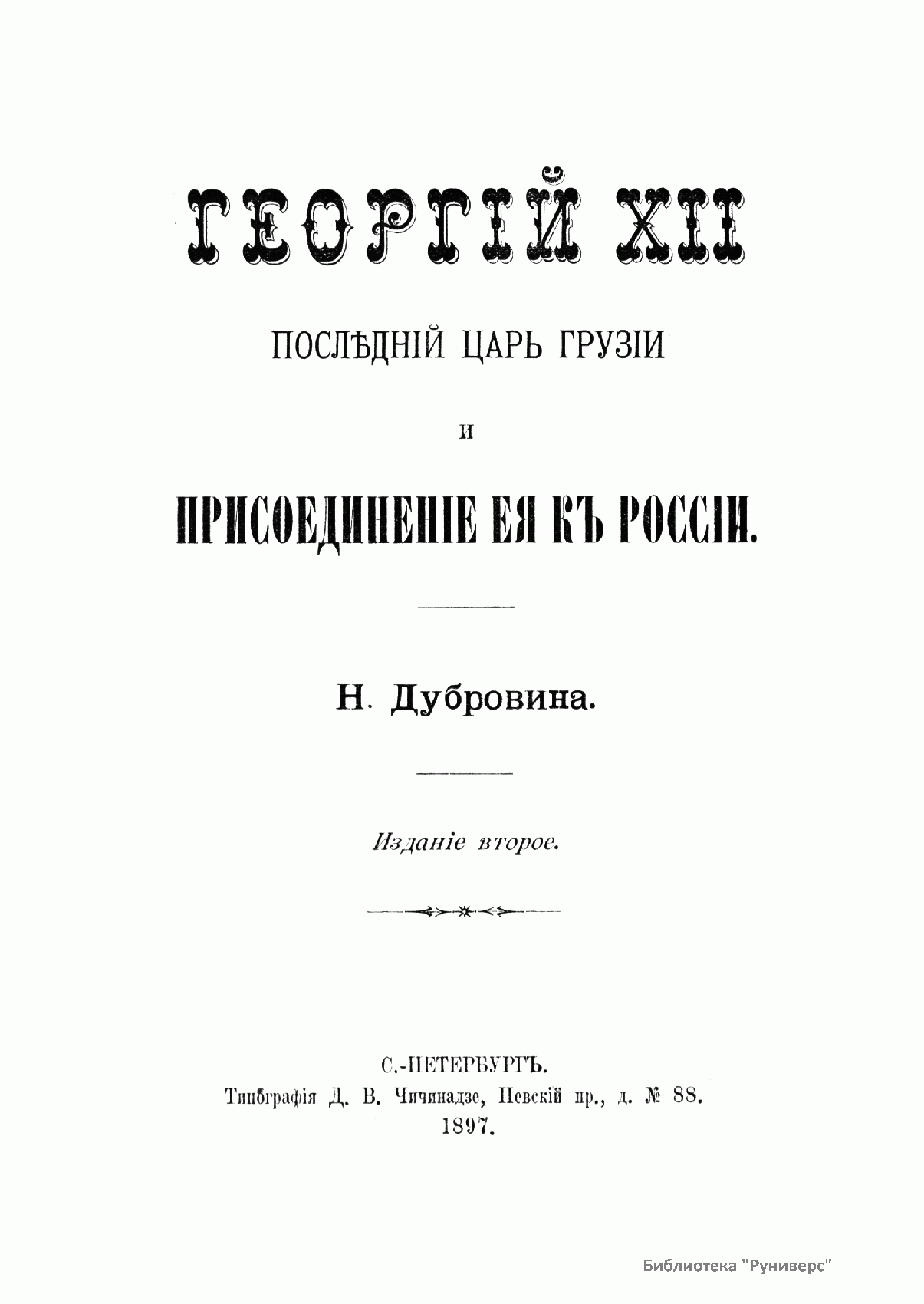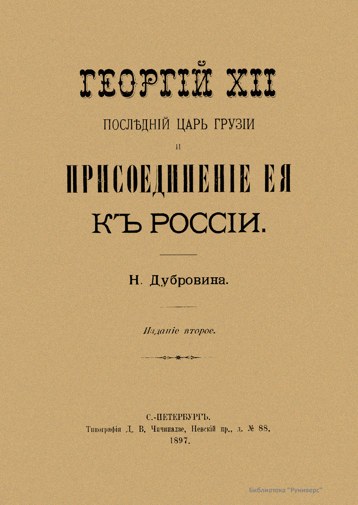 Георгiй XII послѣднiй царь Грузiи и Присоединенiе ея къ Россiи