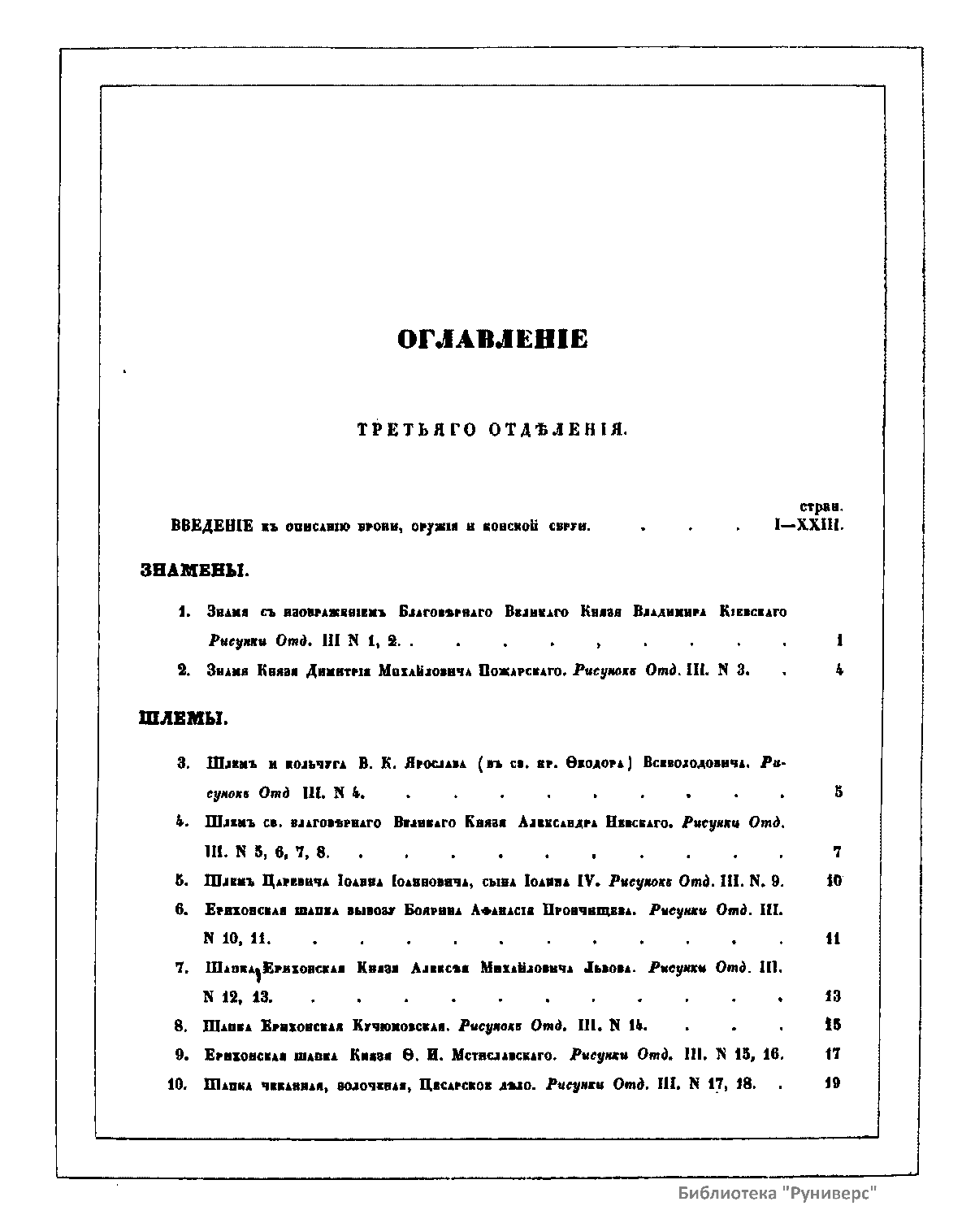 Отделение III. Броня, оружие, кареты и конская сбруя