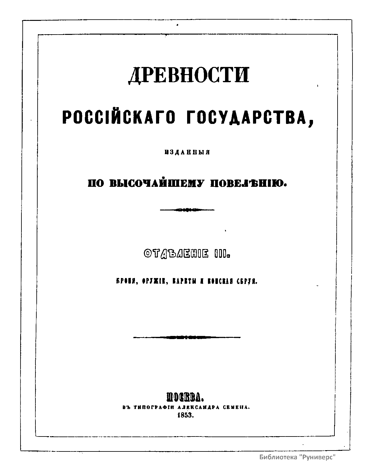 Древности россiйскаго государства. Отдѣленiе III. Броня, оружiе, кареты и конская сбруя