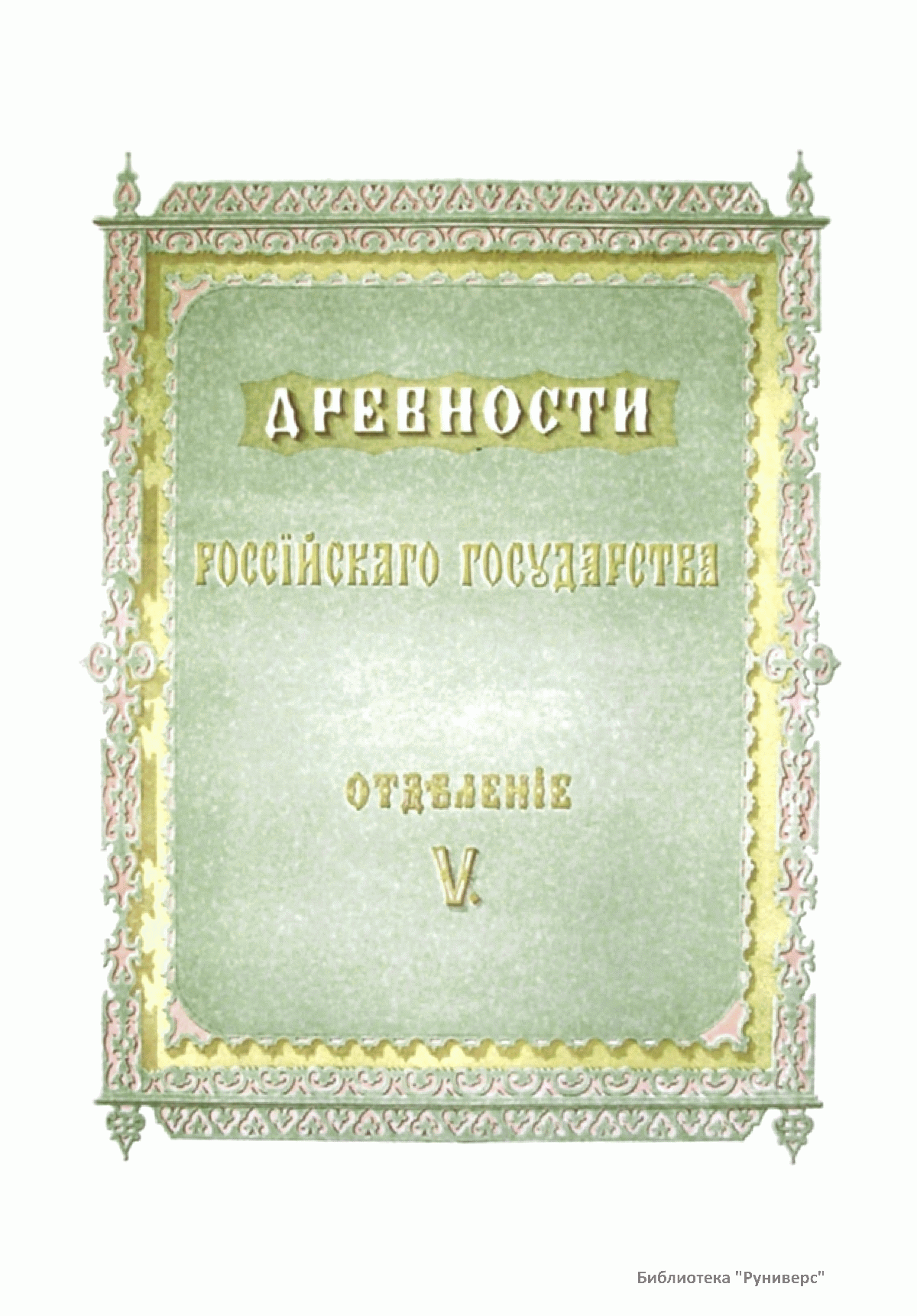 Древности россiйскаго государства. Отдѣление V. Альбомъ