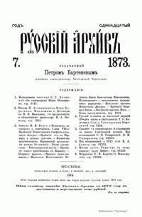 Русскiй архивъ. Историко-литературный сборникъ. 1873. Выпуск 7-12