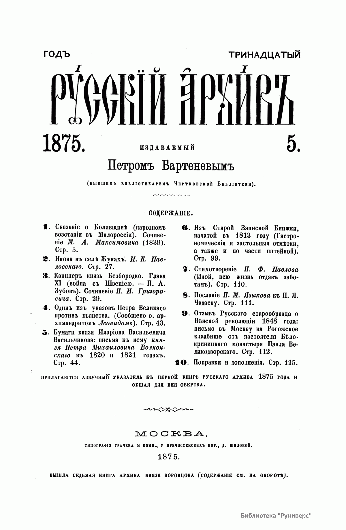 Русский архив. Историко-литературный сборник. 1875. Выпуски 5-8