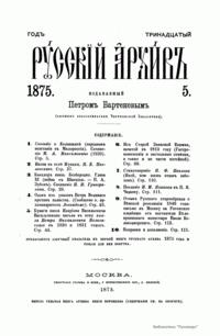 Русскiй архивъ. Историко-литературный сборникъ. 1875. Выпуски 5-8