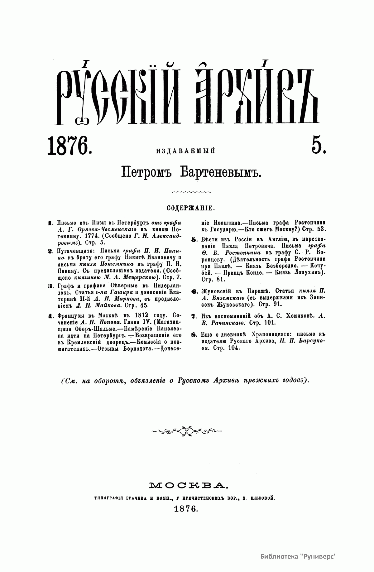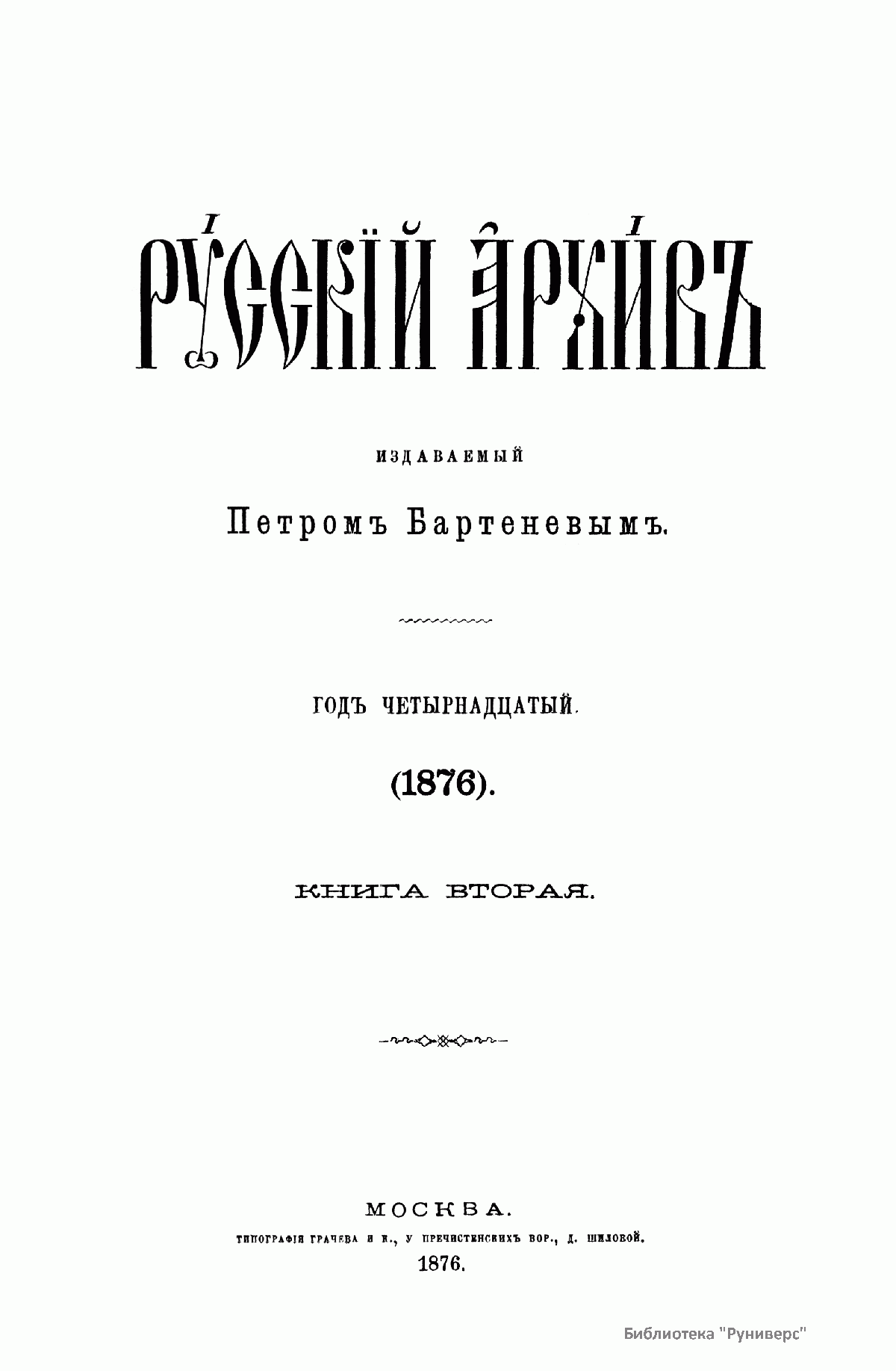 Русскiй архивъ. Историко-литературный сборникъ. 1876. Выпуски 5-8