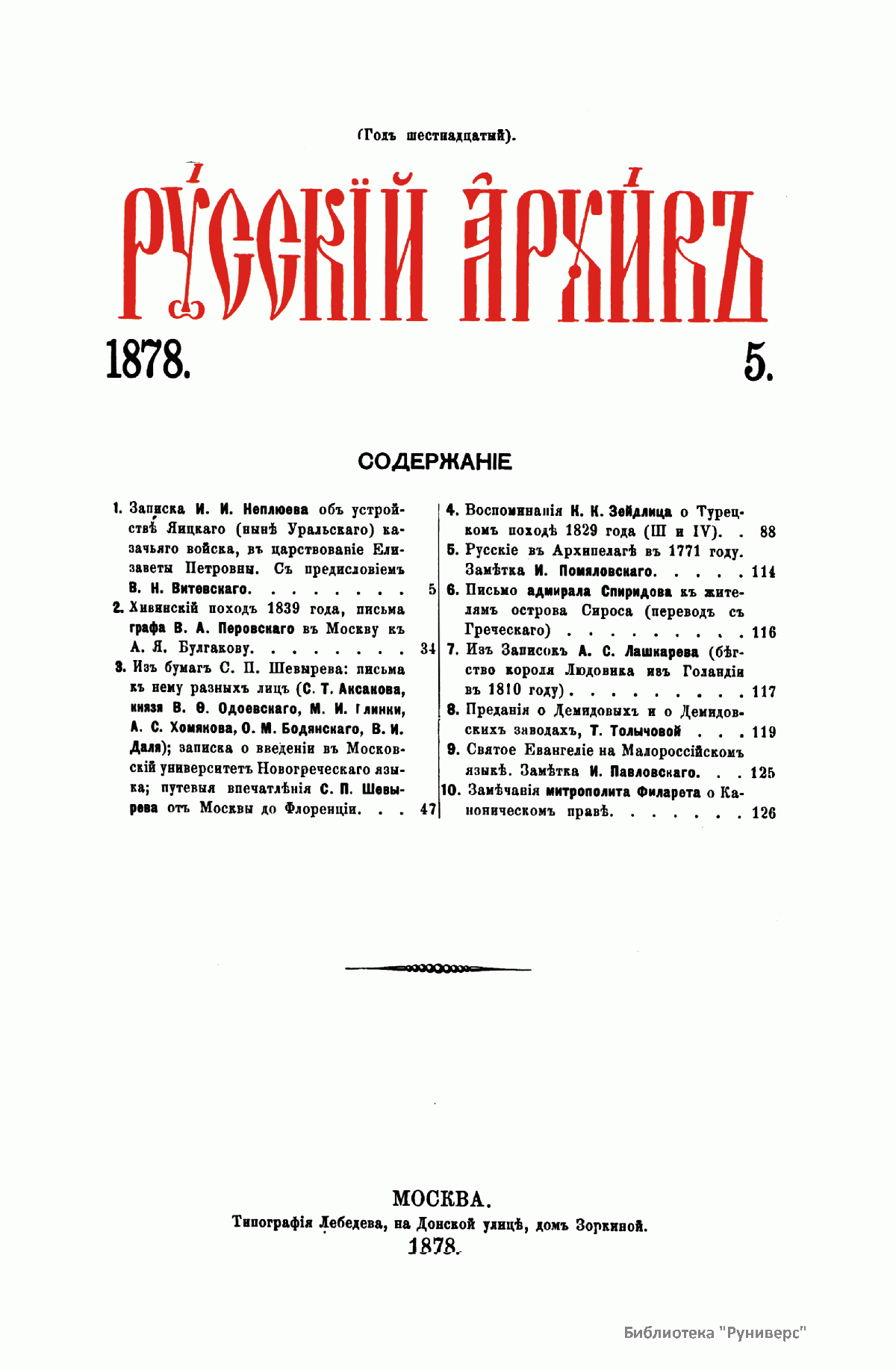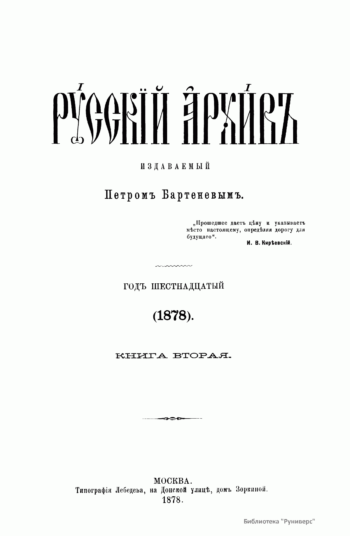 Русский архив. Историко-литературный сборник. 1878. Выпуски 5-8